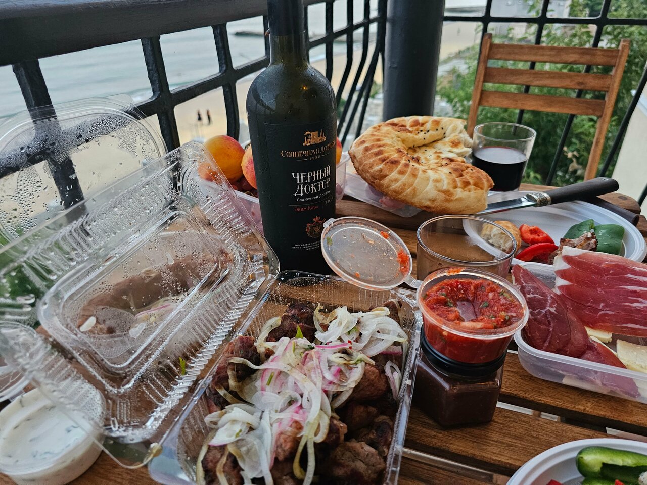Отличное место в удалении от основной суеты и толп на пляже, но при этом вся инфраструктура в шаговой доступности. Удобный заезд на парковку, свежий ремонт набережной, виды на море с балконов.