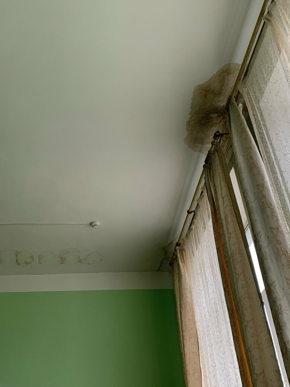 - Пятна на ковролине и протечки на потолке.