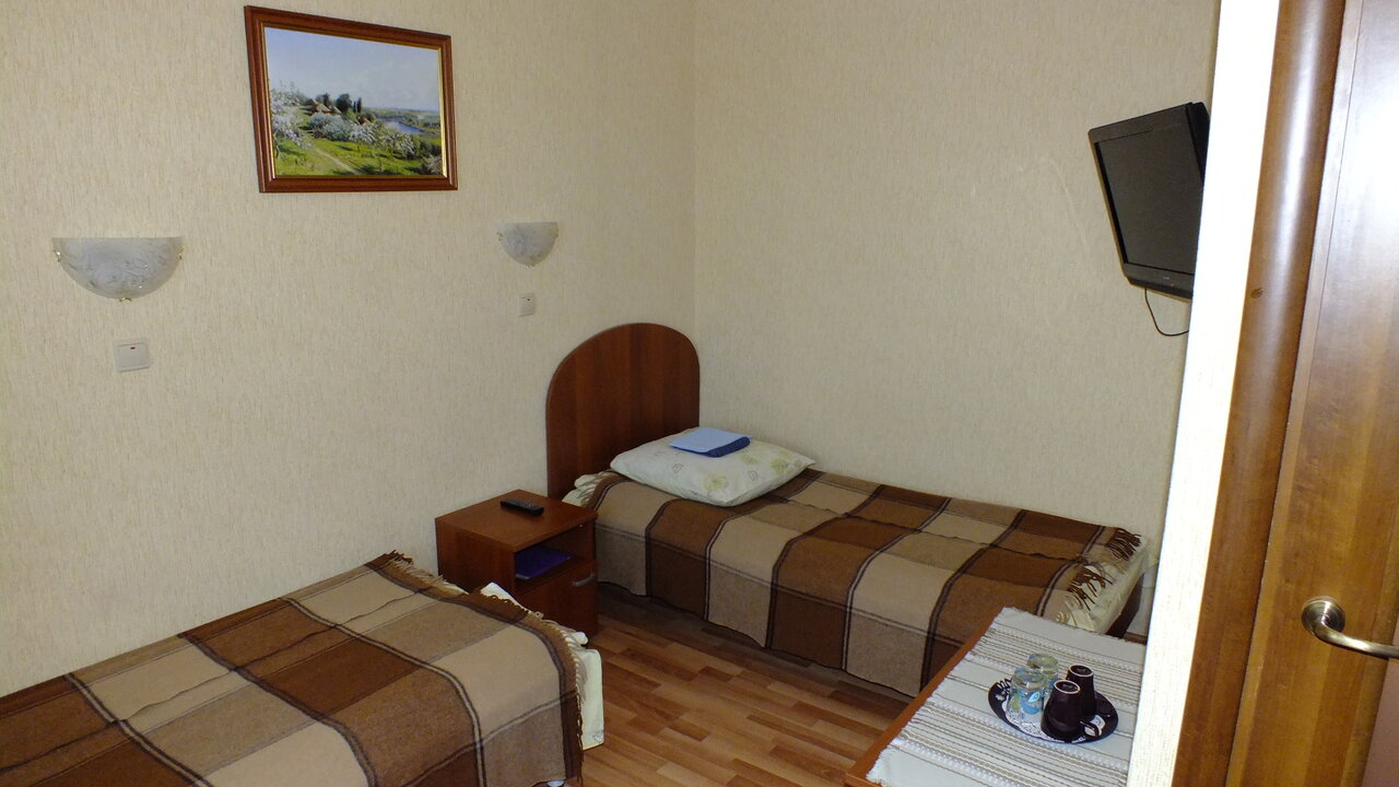 Хороший отель. Добрый персонал, все чисто, своя парковка за сто рублей за ночь. Есть кухня, посуда, микроволновка, электрические чайники. Поесть не проблема, т.к. через дорогу работает Пятерочка. Шустрый вай-фай. Ценник гуманный. Берите с собой тройник — в двухместном номере две розетки. Рекомендую.