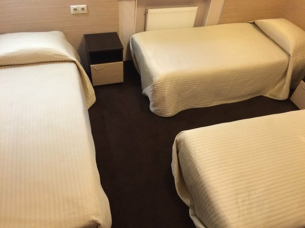 Отель расположен между железной и автомобильной дорогами. Окна не задерживают шум. Если сон чуткий то не выспитесь. Быстрый заезд и выезд. Есть бесплатная не охраняемая парковка. Отель не большой в два этажа. В номере тепло и чисто. Чистое постельное бельё и полотенца. В душе вода горячая. Есть фен и одноразовые гели и шампуни. При отеле работает кафе. Поужинать не получить а легко позавтракать можно.