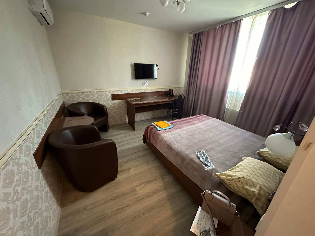 Очень милые администраторы, теплый номер, очень уютный. Есть но, нет питьевой воды в номере, стаканов, фена и маленького шкафчика для одежды, для верхней все в порядке. Очень кресла и столик удивил, очень удобно чай попить . Хорошая гостиница, рекомендую. Процветай Наш край!