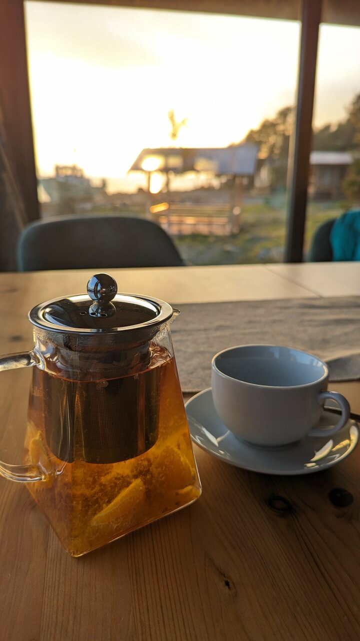 Отличное место, тихая ухоженная территория на берегу моря. Снимали домик на троих человек — очень тёплый (даже слишком) и уютный, с камином. Завтраки были включены, однако за отдельную плату можно заказать обед и ужин (дороговато, но оно того стоит). Можно также заказать баню и взять напрокат удочки.