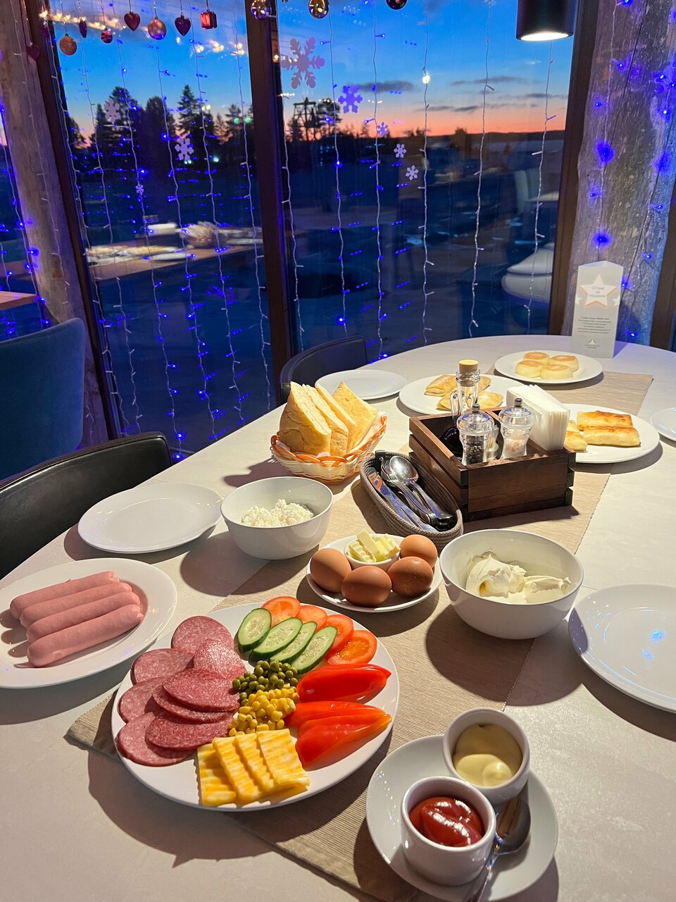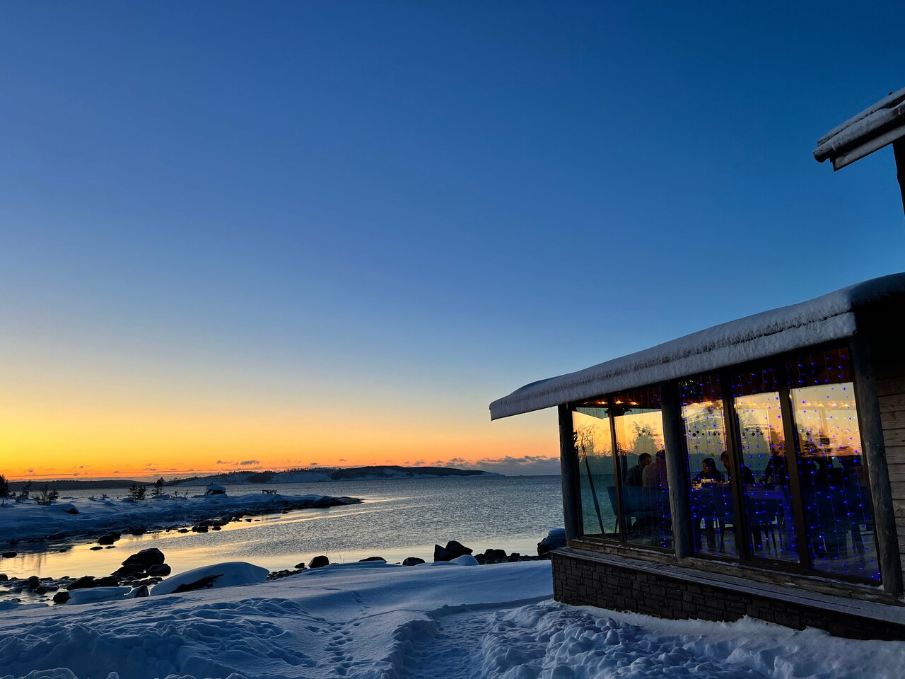 Прекрасное место на берегу белого моря. Ресторан очень уютный, особенно в вечернее время. Оставались на одну ночь в коттедже и остались очень довольны!