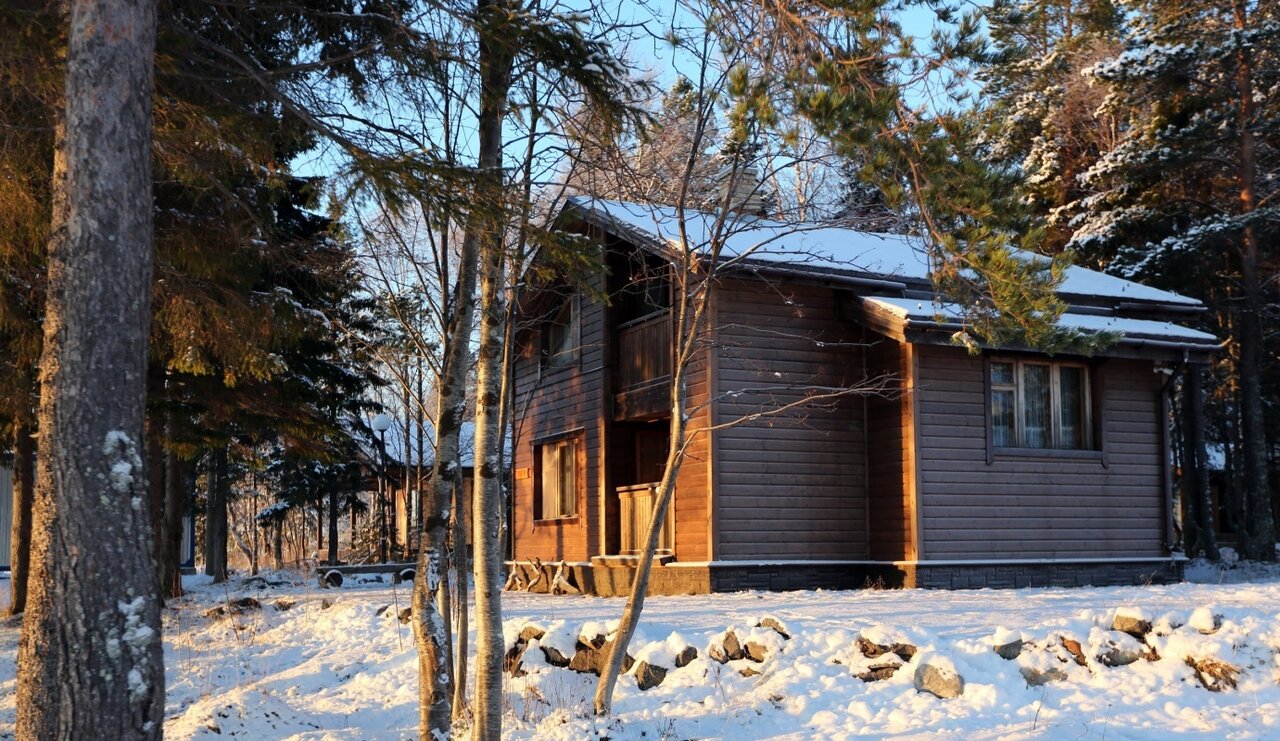 - Прекрасное расположение на берегу моря.; Комфортабельные коттеджи с удобствами.; Большая ухоженная территория.; Просторные домики с камином.; Возможность заказа бани и проката удочек.
