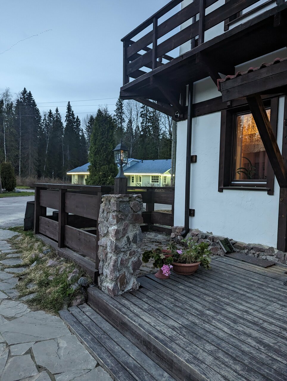 Живописна местность — определенно плюс. Можно провести замечательные выходные с семьёй. На счёт питания — на мой взгляд, — очень даже неплохо. Из минусов : - Внутренне убранство номера мне не очень понравилось, возможно просто ‘повезло’. Всю картинку испортила схема комнаты, всё-таки, на мой взгляд входная дверь должно находиться в одном углу со шкафом и санузлом, а не вести прямо к краватям. - Близко граница с Финляндией. Мой оператор сотовой связи забросил меня в роуминг. Хотя WiFi спасает ситуацию. В целом, уединенный уголок живописной Карелии. Стоит хоть раз побывать.