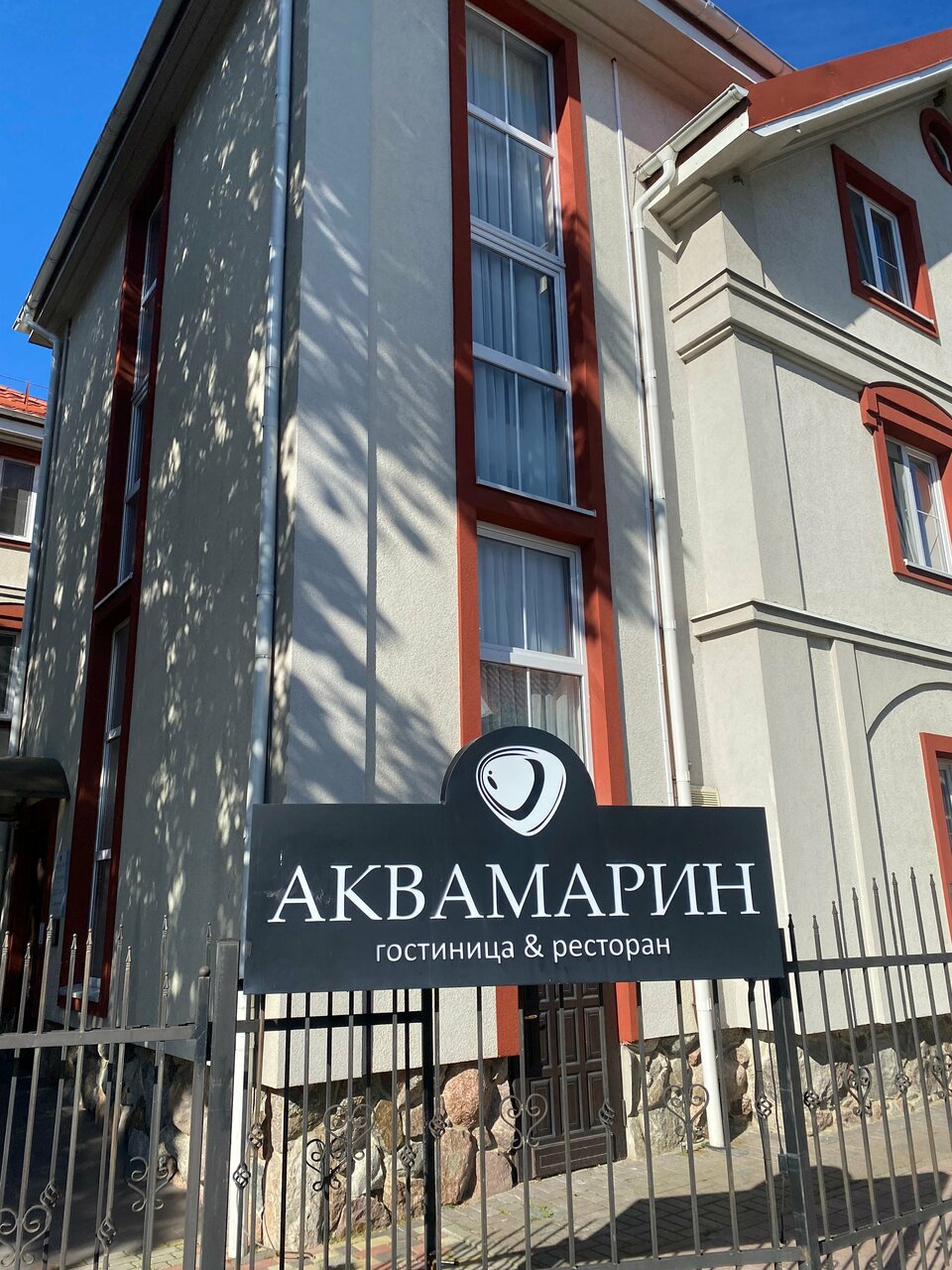 Замечательное расположение, аккуратные номера со свежим ремонтом, всеми удобствами, видом на море, променад и озеро(?) с утками и лебедями. Очень понравился персонал, прекрасный, ненавязчивый. Готовы много рассказать о Янтарном, если спросишь — подскажут, куда и как лучше сходить/ с’ездить. Вкуснейшие завтраки (обедали ‘в городе’). Хотели бы приехать ещё? Да. И, конечно же, Аквамарин.