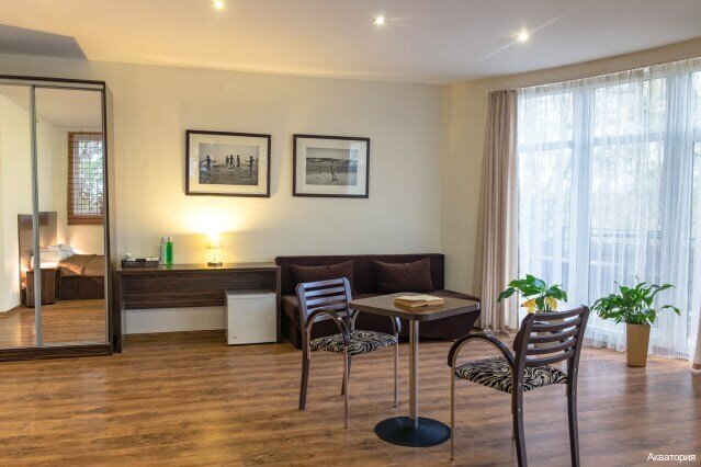 - Хорошая гостиница с интересными номерами (например, двухэтажный "Маяк").; Просторные номера с балконами и видом на море.; Хорошие горки и развлечения внутри отеля.; Чистая территория, зелень, свой выход к пляжу.; Приветливый и вежливый персонал.