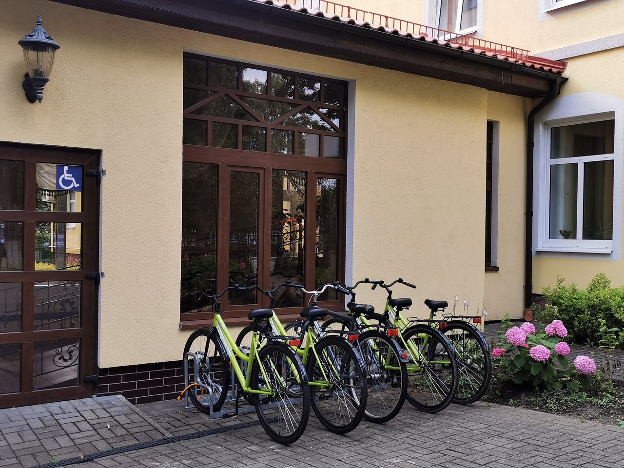 Комплекс имеет два здания. Одно выполнено под старину, другое современное. Находится рядом с парком и недалеко от пляжа. Рядом Балтийское море. Очень красиво