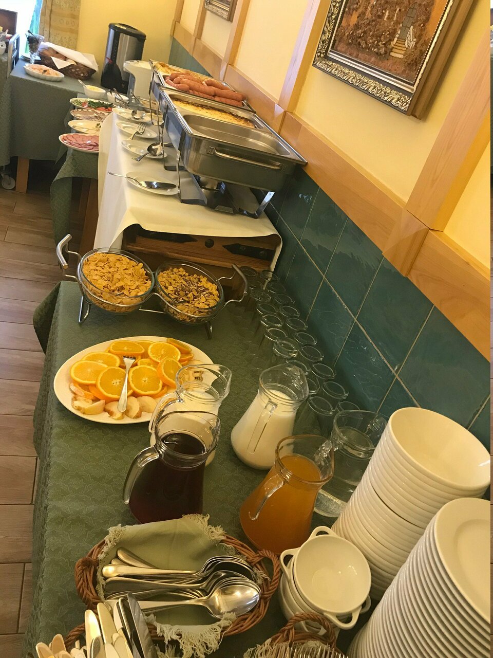 Завтрак обычный. Без излишеств. Все стандартно — каша, омлет, блины, фрукты, овощи. В номерах чисто, но пахнет канализацией. Было дополнительное место для ребенка — раскладушка — очень неудобная и со скрипом. Обслуживание хорошее. Расположение отличное — 5 минут ходьбы неспешным шагом до моря. Пляж отличный — шезлонги, зонтики и даже полотенца — 700 рублей одно место на целый день. В целом впечатление неплохое