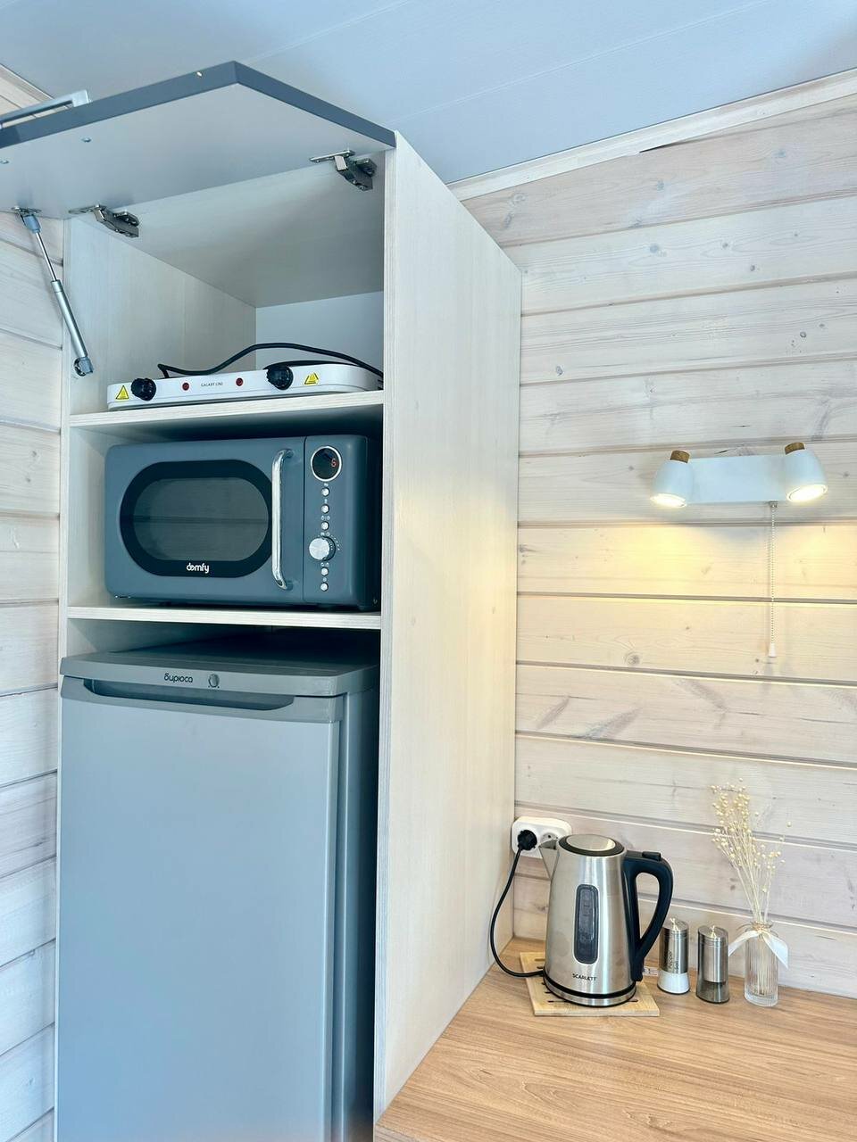 Всего в домике 2 отдельные спальни с большими и удобными кроватями 160:200см + раскладной диван в гостиной. Проживание до 5 человек.Кухня, стиральная машина, кондиционер, отопление, smart tv, беспроводная колонка, постельное белье и полотенца.