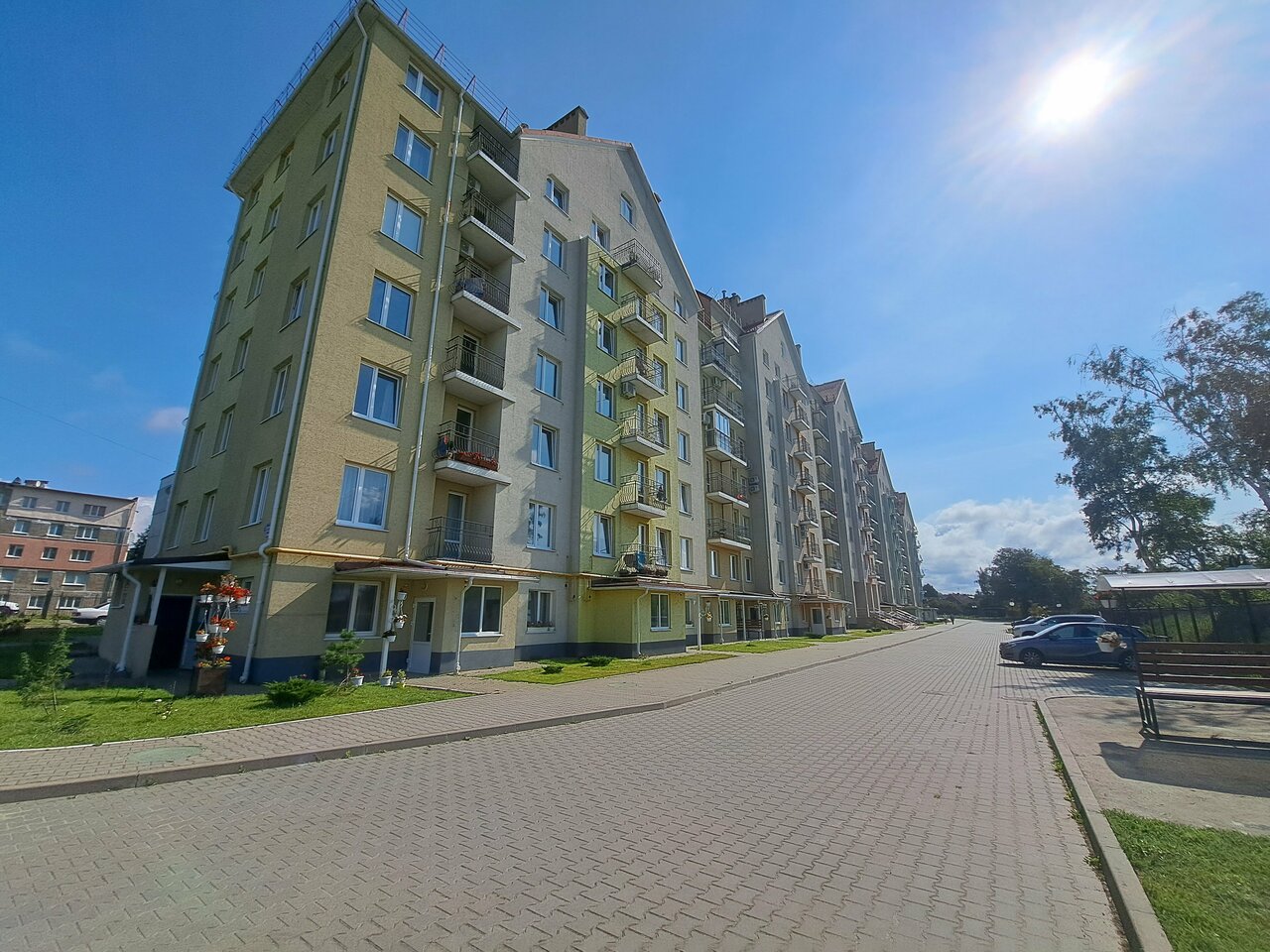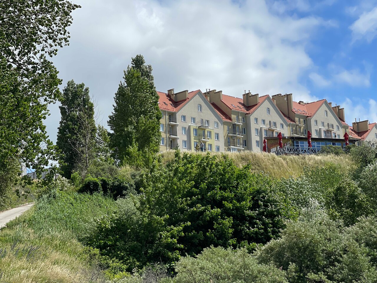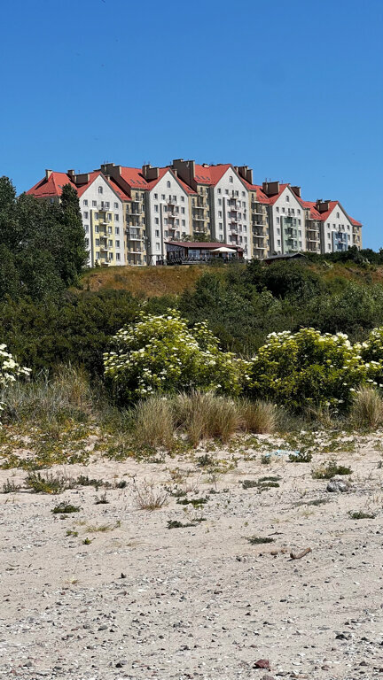 Дом построен совсем недавно. Номерной фонд ещё не устал. Находится на удалении от центра, но зато тихо и спокойно. Снимали 2-х комнатную квартиру. Все чисто. Утюг, гладильная доска, фен есть. Тарелок и приборов на трех человек хватало. Расположение потрясающее. На территории есть детская площадка. Море и лес рядом. Практически за углом есть дикий пляж.