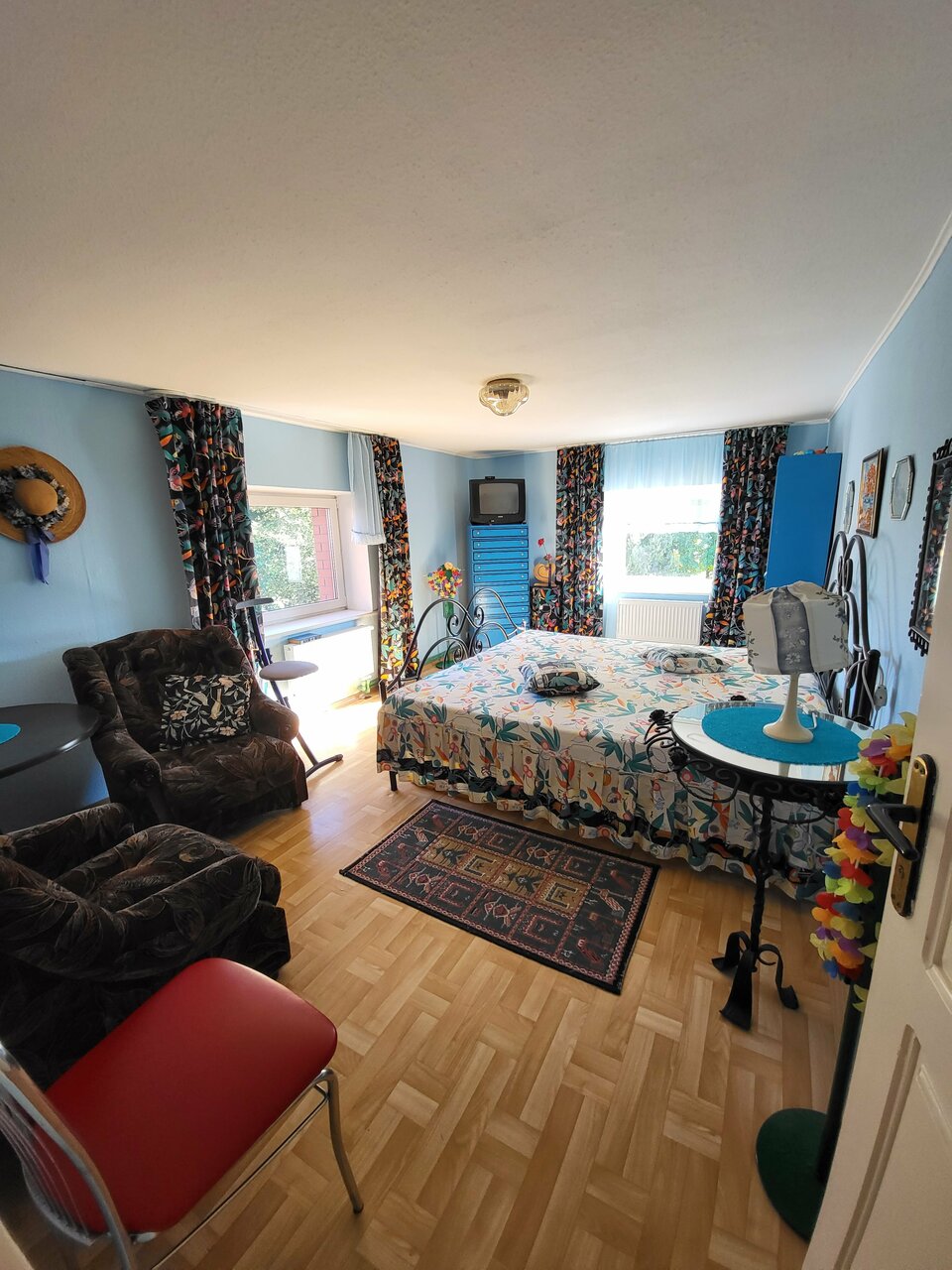 Остановились на сутки, в итоге продлили на 5 суток до самого отлета. Нам очень понравились комнаты, особенно голубая. Комната, санузел чистые, приятно пахнущие, комфортные, несмотря на то что это немецкая постройка. Большой зеленый двор с красивой растительностью. Около дома гнездо с аистом. Есть где готовить. Бассейн, баня, сауна. Все что душа желает. Спасибо за гостеприимство хозяевам, которые встретили доброжелательно. Отдельное спасибо Евгении, за быстрое бронирование. До центра зеленоградска на машине 10-15 мин. Кто путешествут на машине это лучший вариант. Около дома продуктовый магазин. До ближайшего супермаркета 5-7 мин на машине. Обязательно приедем еще в следующее путешествие.