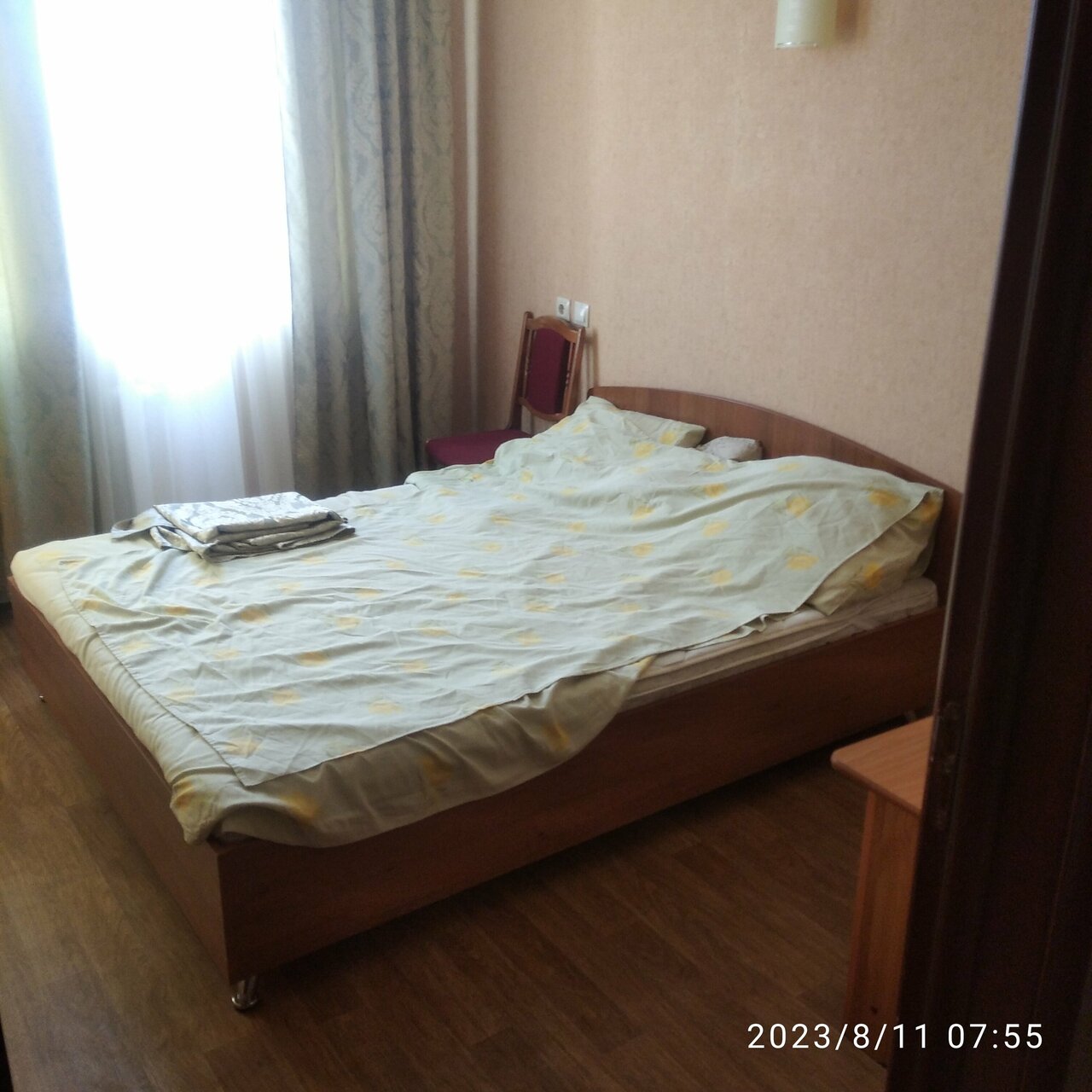 Большая гостиница, на 1 этаже можно перекусить в кафе (в среднем чек на двоих-1 тр., не впечатлило) . Стандартный номер- 3 тр. Кондиционер, телевизор, чайник, кружки. Не удобные одноместные кровати( чувствуешь пружины в матрасе) , подушки маленькие, никакущие, но в дороге самое главное помыться и упасть спать. Чистое бельё, чистый номер. В с/у есть всё необходимое. Переночевать можно. Охраняемая стоянка 100 р.