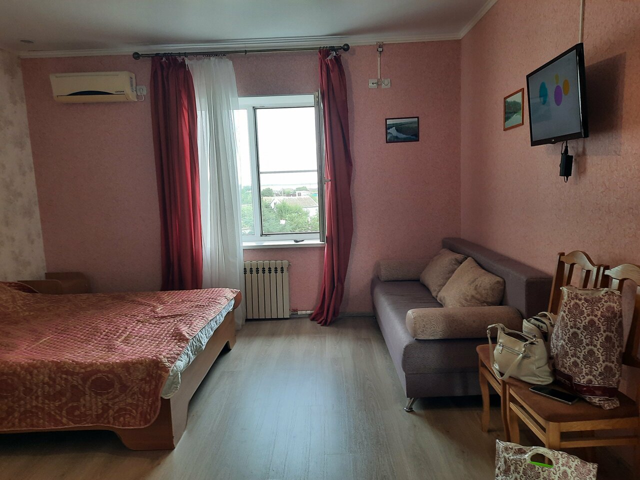 В 5-и местном номере три кровати: полуторная,двухспальная кровать, двухспальный диван,телевизор,стол,посуда,душ,туалет. Без окна