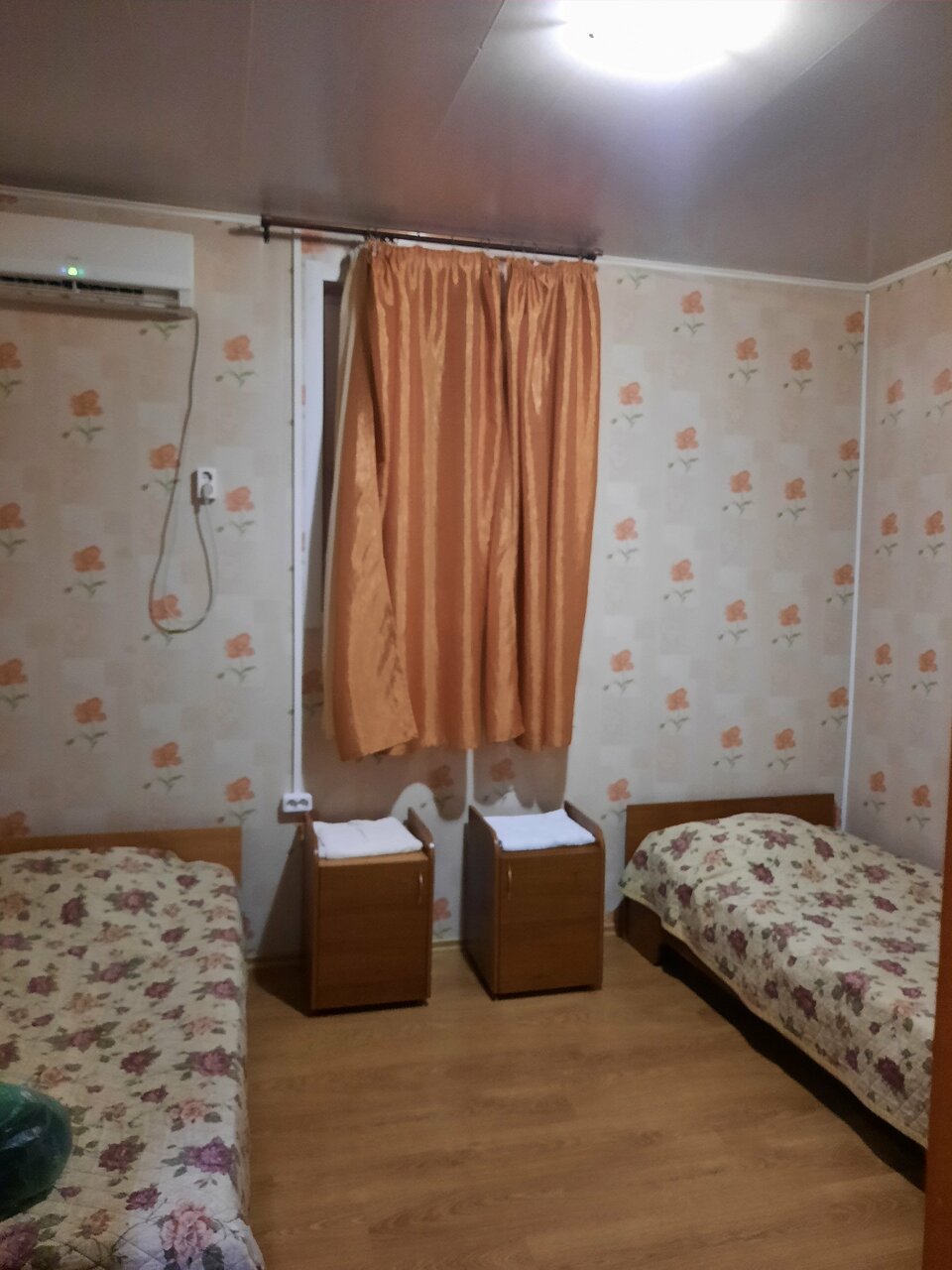 номер эконом 3-х местный, общий санузел с душевой кабиной на против номера. В номере 1 односпальная кровать и 1 двухспальная кровать, телевизор, тапки, полотенца, Wi-Fi. Без окна