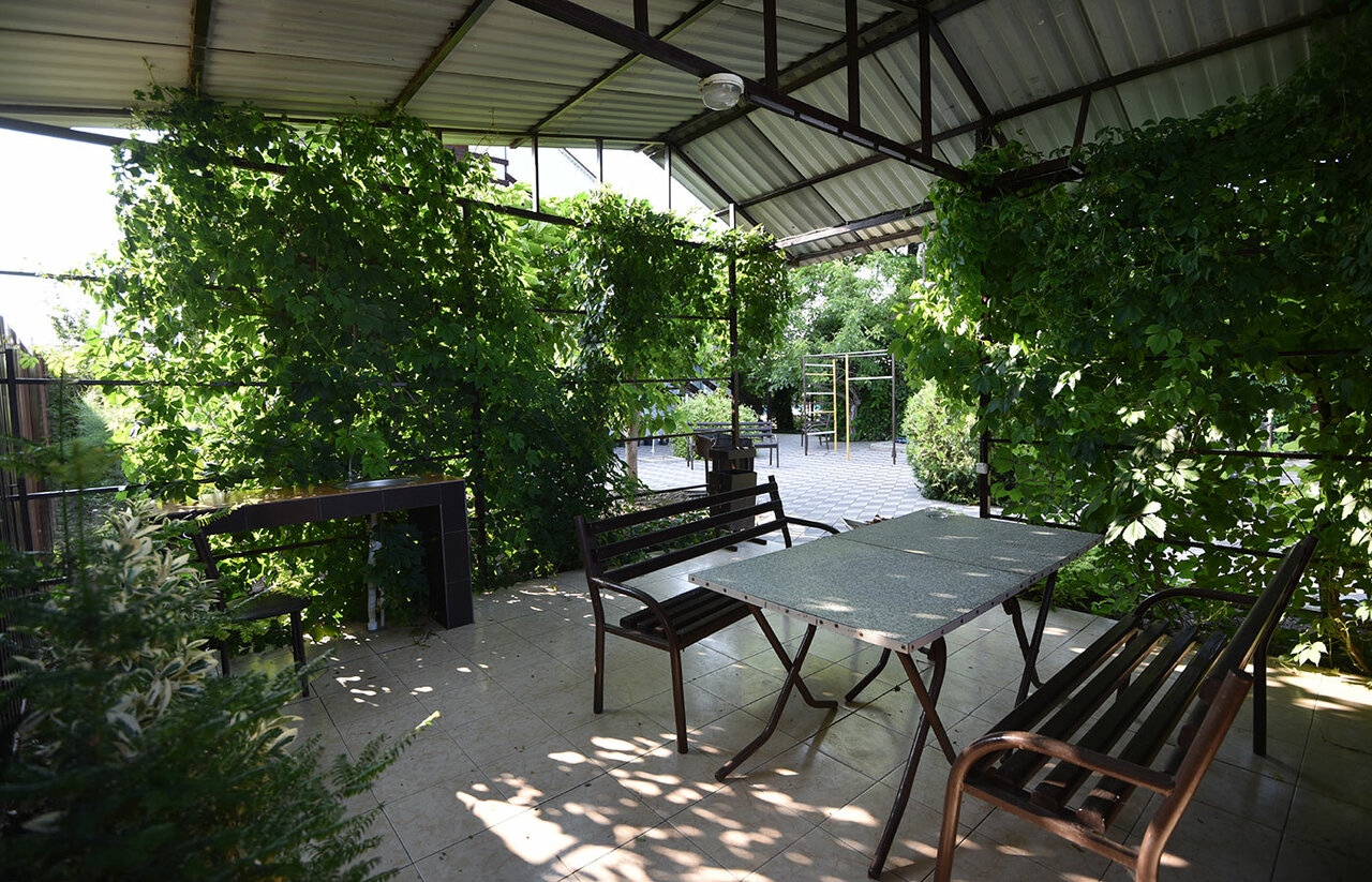 Уютные номера,доброжелательные хозяева,до моря 30 метров.На территории бассейн(с подогревом),детская площадка,семейное кафе,для желающих готовить -отдельная кухня.В целом это место для желающих отдохнуть от городского апокалипсиса…