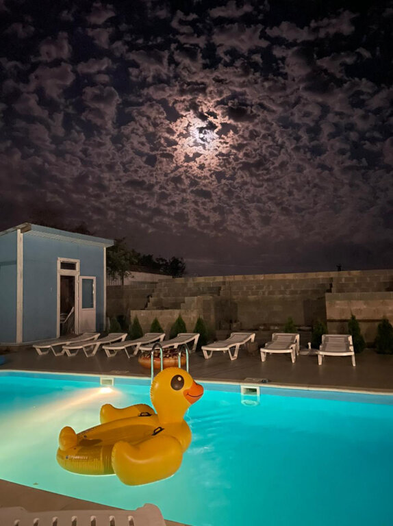 Гостеприимные хозяева, уютные светлые домики, круглосуточный тёплый бассейн с лежаками. Покормят завтраком, ужином. Есть стиралка, микроволновка, wi-fi, горячая вода в душе не заканчивается. До моря 10мин ходьбы. Из минусов, недалеко железная дорога до порта Кавказ, но поезда ходят очень редко.