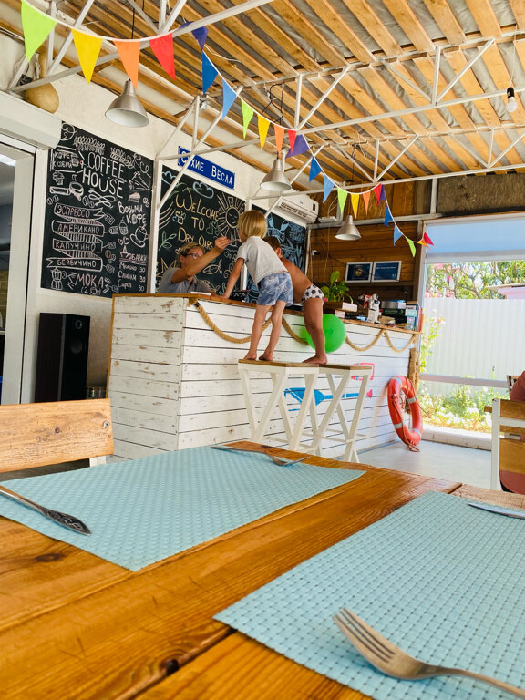 Отдыхали в ‘Сухих веслах’ с конца августа по 10 сентября семьей из 4-х человек, из которых 2 ребенка. И это был самый лучший наш семейный отдых. Абсолютная чистота в домиках, белоснежное бельё и полотенца, интерьер в домиках не уступает хорошему отелю. Большая и закрытая территория, где детям есть чем заняться, и просто побегать. На территории бассейн, который регулярно чистят. Питание выше всех похвал, мы удивлялись каждый день вкусу и подаче. Лена и Саша огромные молодцы! Пусть ваше дело растет и развивается, ну а мы уже забронировали даты на следующий год, и с радостью к вам вернёмся!!! Это спокойный семейный отдых, где тишина в поселке, небольшие магазины, фрукты по низким ценам, ну и конечно же море, ради которого и едут в отпуск)) Мы остались полностью довольны, жаль тут нет оценок, я бы с удовольствием поставила самый высший балл. Еще раз спасибо ребята, и до скорых встреч!!! Аня, Игорь, Тима и Лука