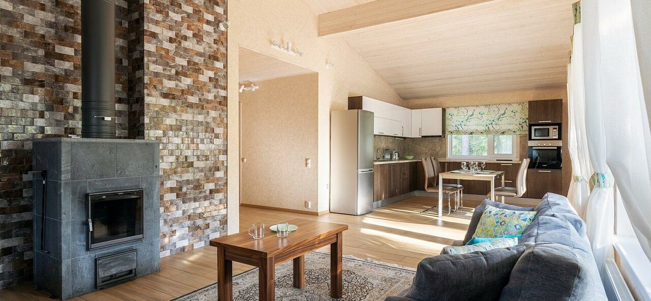 Коттедж “Озерный” имеет 4 улучшенных апартамента, которые прекрасно подойдут для молодоженов или пары без детей, решившей отдохнуть от суеты. Коттедж находится в лесу, недалеко от озера, где есть место для купания. Апартамент представляет собой номер