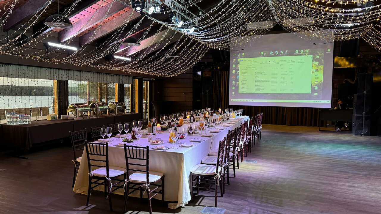 Банкетный зал «NaGorke» – визитная карточка курорта «Лесная Рапсодия». Зал расположен на высоком песчаном берегу озера, откуда открывается потрясающий вид на закат.Живописный вид на озеро и просторная терраса, как капитанский мостик парящая над ...
