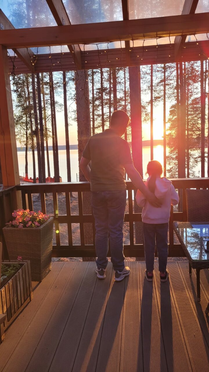 Замечательное место для отдыха, есть все необходимое. На всей территории вежливый и внимательный персонал. Воздух, солнце, озеро и много всего… Одну звёздочку снимаю только за грязный пол в коттедже, а ведь к нашему заселению его должны были помыть (вошли, сняли обувь, прошлись по первому этажу в носках и поднялись на второй и носки стали чёрными — впечатление подпортилось) и внутренняя стенка холодильника вся в каплях воды (хорошо бы его починить или заменить). Пол, кроме первого этажа, очень сильно скрипит А в остальном всё отлично обожаю это место