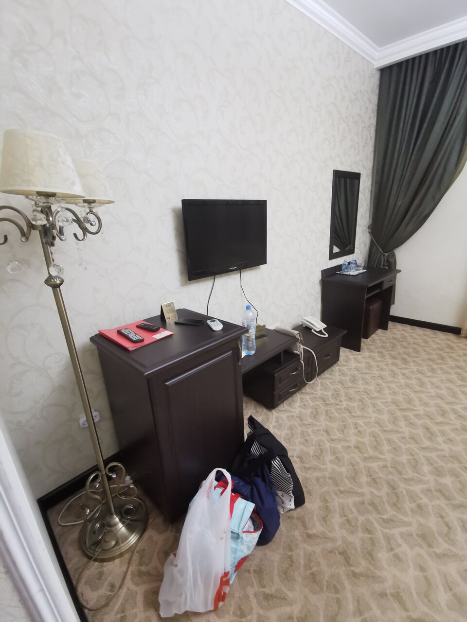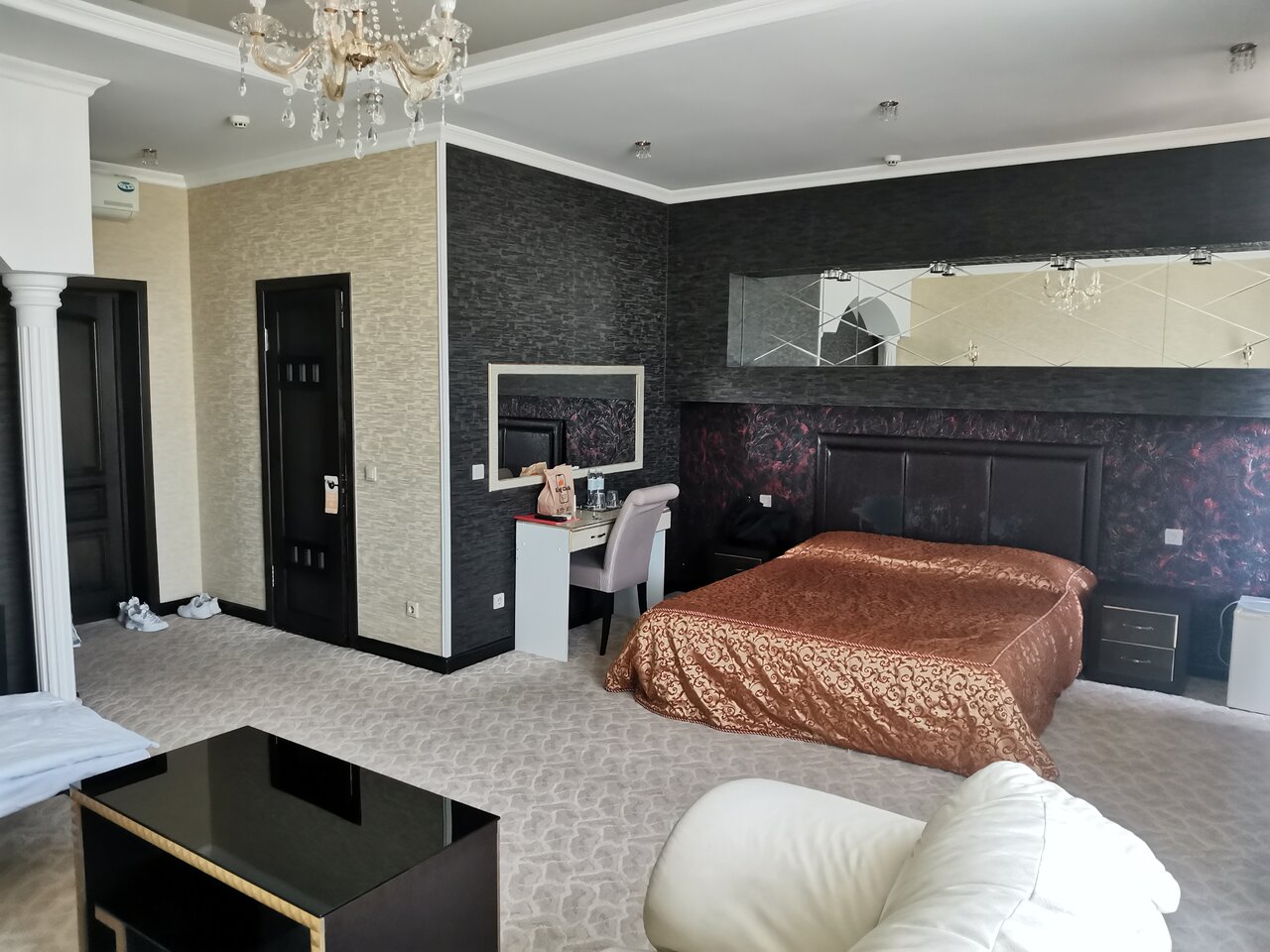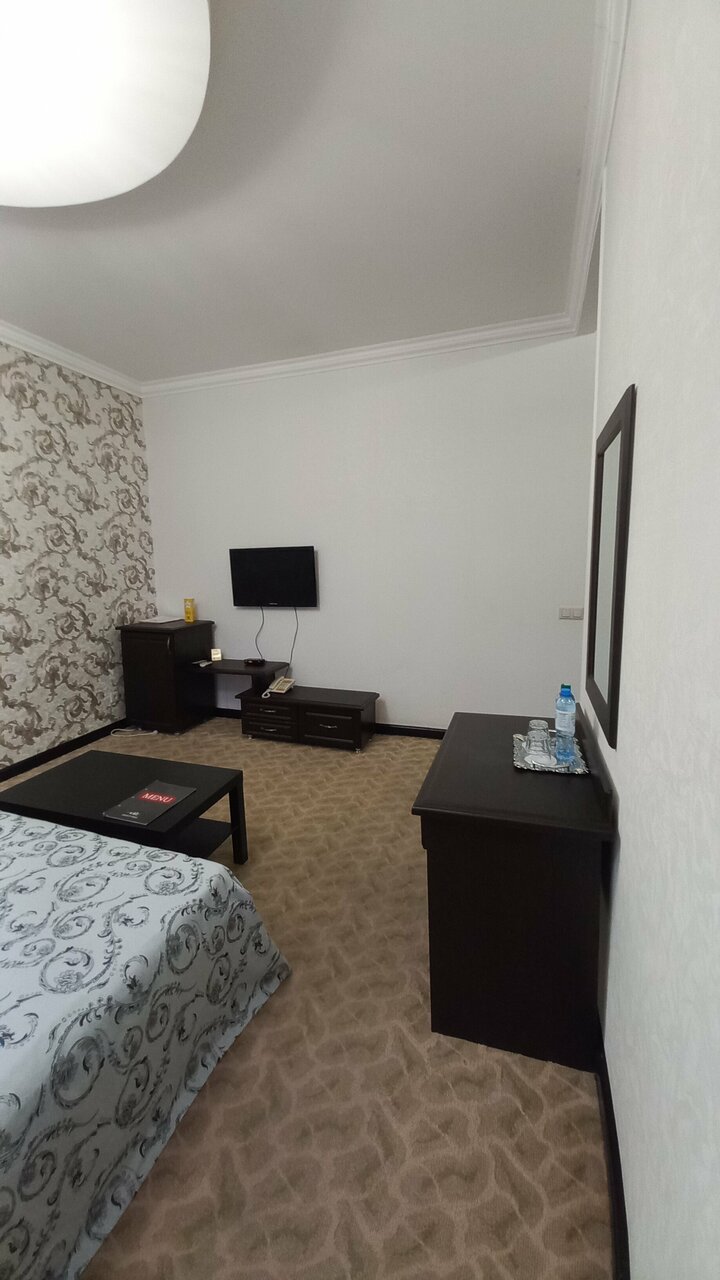 Отдыхали в номере 15 отличный большой просторный номер в котором есть всё необходимое начиная от мыло и расчёски и заканчивая халатами и тапочками. В номере есть балкон огромный телевизор сплит-система. Номер чистый персонал очень отзывчивый на первом этаже отеля есть кафе и рестораны парковка для автомобилей Прямо во дворе отеля рядом с отелем располагается автомойка и автосервис