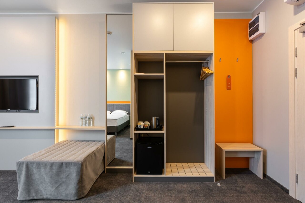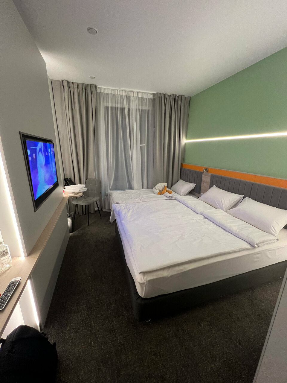 Отличный отель. Чистый, современный. Очень уютный номер. С дизайнерскими изюминками. Много сценарииев освещения. Большой экран телевизора, хорошее качество приема. Комфортная постель. Работает кафе 24 часа. На любой вкус. Еда домашняя. Вкусная. Свежая выпечка. Зерновой кофе. На мой взгляд- отель по мировым стандартам. Рады, что сетка появилась у нас в России. Желаем удачи и процветания.