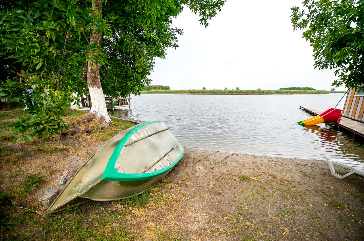 - Песчаный пляж и купание в реке.