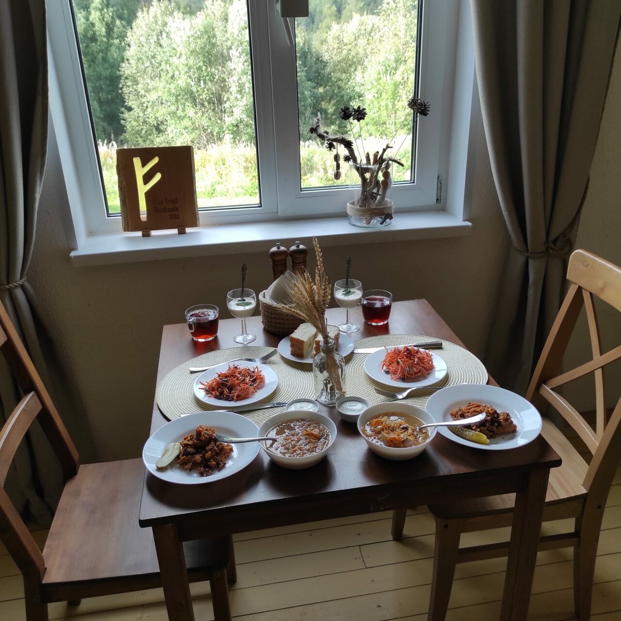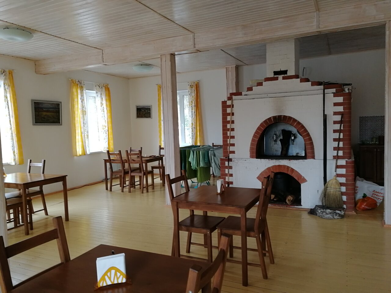 Отель нелохой. Из плюсов: 1. хорошее расположение для поездок по достопремечательностям; 2. Лес, озеро рядом. 3. В номерах чисто, все необходимое есть. Но есть минусы, для нас ощутимые (2 взрослых и 2 детей): 1. На кухне очень жарко! Печка постоянно топится, а открывать окна и двери, чтобы проветрить помещения нельзя. Дети там есть не могли, приходилось в номер все брать. А нести приходится на второй этаж по лесенке. 2. Территория неблагоустроенная, негде погулять с маленькими детьми.