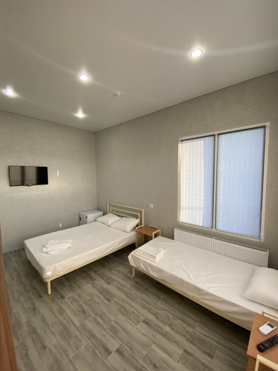 Начитавшись хороших отзывов, поверили и забронировали номер, но очень пожалели Ночлег прямо у дороги, окна выходят на дорогу и шумоизоляции просто нет. Выспаться и отдохнуть с дороги не получится. Номер весь в трещинах, запах внутри ужасный, канализация вместе с непросохший цементом, так как гостиница открылась недавно. Кровати как в казарме, тонкий матрас и железный каркас. Номера плохо убирают. На завтрак даже не решились пойти. Больше не приеду и никому не посоветую!!!!