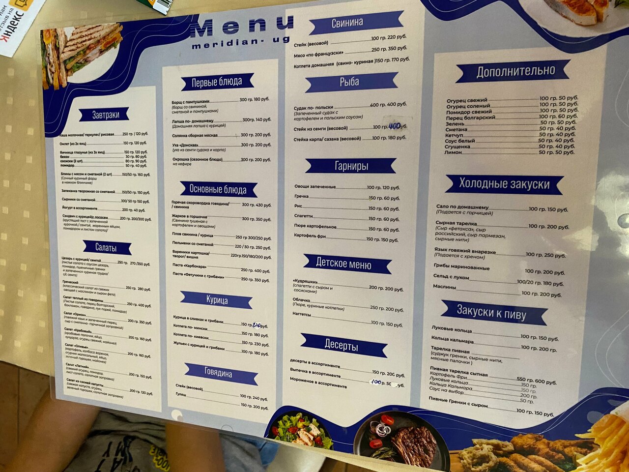 Отдыхали по дороге на море. Боюсь уже сказать который раз. Люблю ‘Меридиан’ всей душой за гостеприимство. В этот раз были с собакой, всё отлично. Номер был в новом здании, но мне показалось, что душевая кабинка немного уставшая, налёт извести уже приличный. Видимо, вода жестковата. В остальном — матрас прекрасен, бельё белоснежное, уютно. Что ещё надо после утомительной дороги? Кафе. Как всегда всё очень вкусно. Порции рассчитаны на очень крупного мужчину))) Я осилить не смогла. Единственное — приходится долго ждать с утра, чтоб заказать. Народу много, а девушка, заведующая оплатой, при этом ещё и варит кофе и иногда выносит заказы гостям. Мне кажется, хотя бы с утра бариста должен быть баристой, а кассир — кассиром. В остальном — в другое место и ехать не хочется. Дяде Саше отдельный привет.