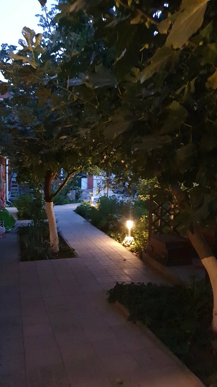 Гостиница или гостевой дом..? не важно. Дворик чистый и много зелени. В жаркий день тенёк. В номерах сан.узел, кондиционер и холодильник. Всё работает. везде чисто. Можно поставить машину во дворе. Есть общая кухня. Местоположение очень удобное. Близко и до моря, и до торговли. Рядом три или четыре столовые, если кто не хочет готовить. Рынок тоже рядом. В общем, рекомендую однозначно.