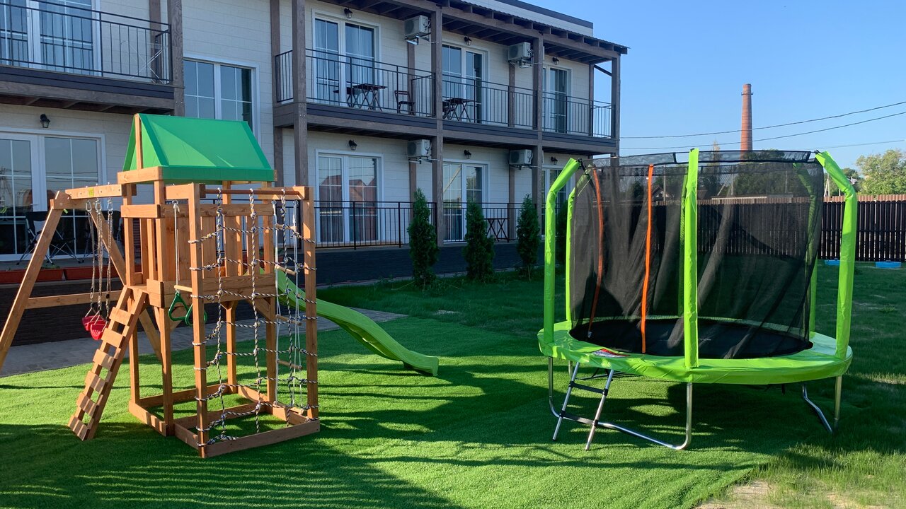 - Детская инфраструктура (площадка, качели, батут, горка, кроватки).