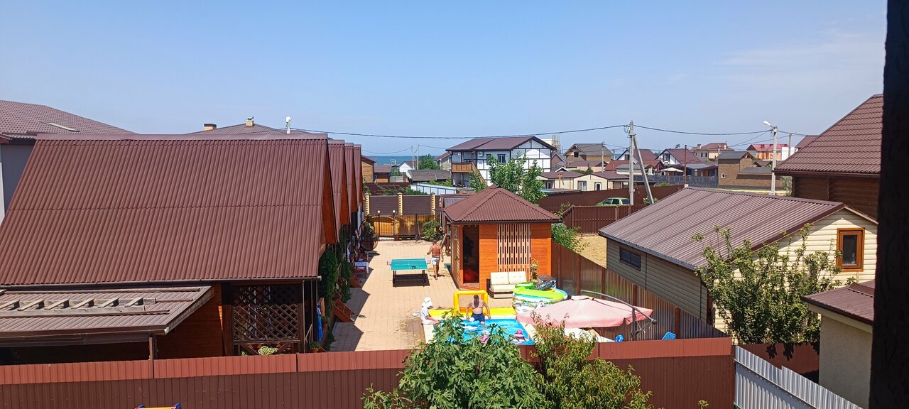 Отдыхали семьей 5 человек, двое детей. Очень замечательное место, 5 минут до моря, причём пляж отличный . Отдыхали в начале августа с 1 по 4 , медуз было немного, берег песчаный, с ракушками. Недалеко 3 км грязевой лечебный вулкан. В гостевом доме есть общая кухня где есть все как дома, столики, беседка, небольшой бассейн, который обслуживают постоянно, кристально чистый, чистые номера, уютные, без запахов, с концертами и тв, правда вайфай работает слабовато. Место тихое, отдыхающие были приличными, в основном семейные. Есть место парковки.