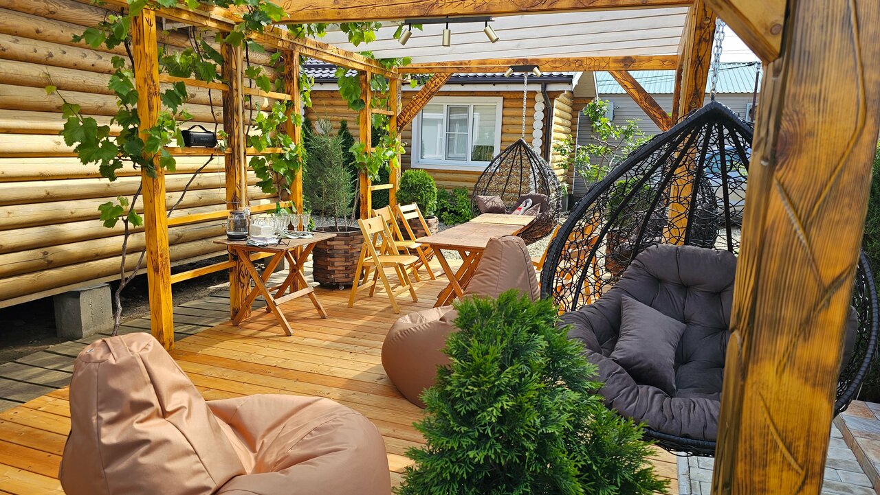 Отличное место для отдыха. Уютные домики (со сруба) с террасами. Оборудованы всем необходимым. Детская площадка , парковка , отзывчивые хозяева! Отдыхали семьёй в августе 24 . Всё понравилось!