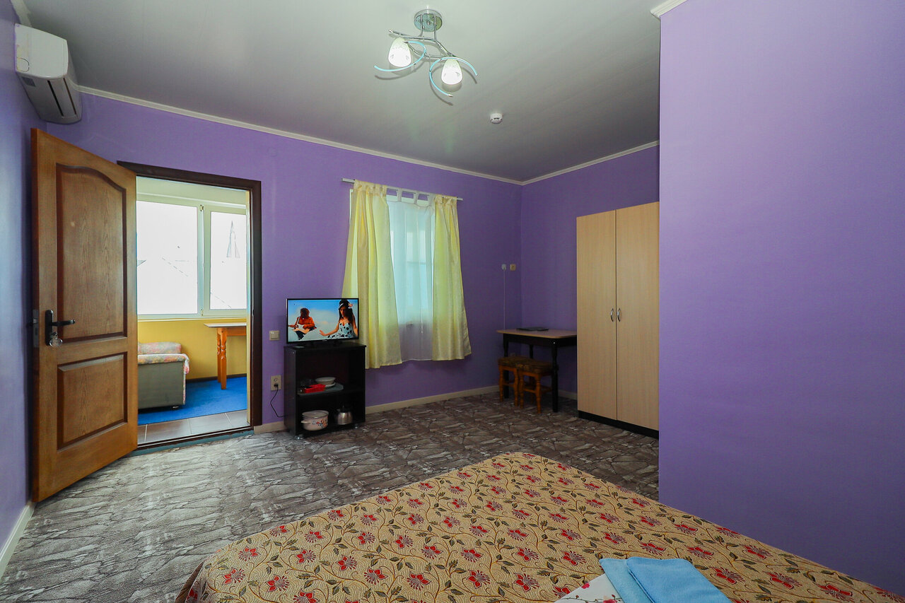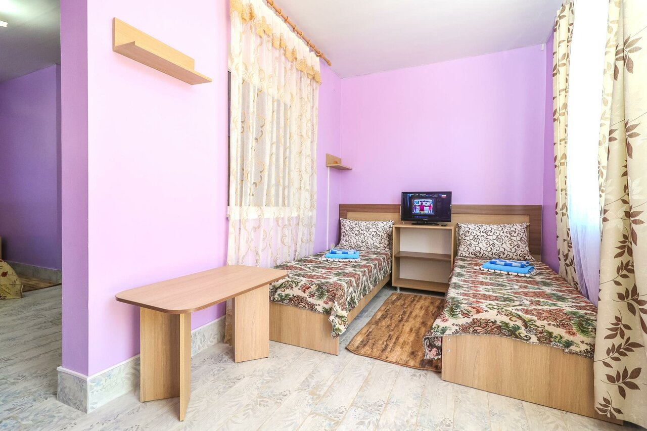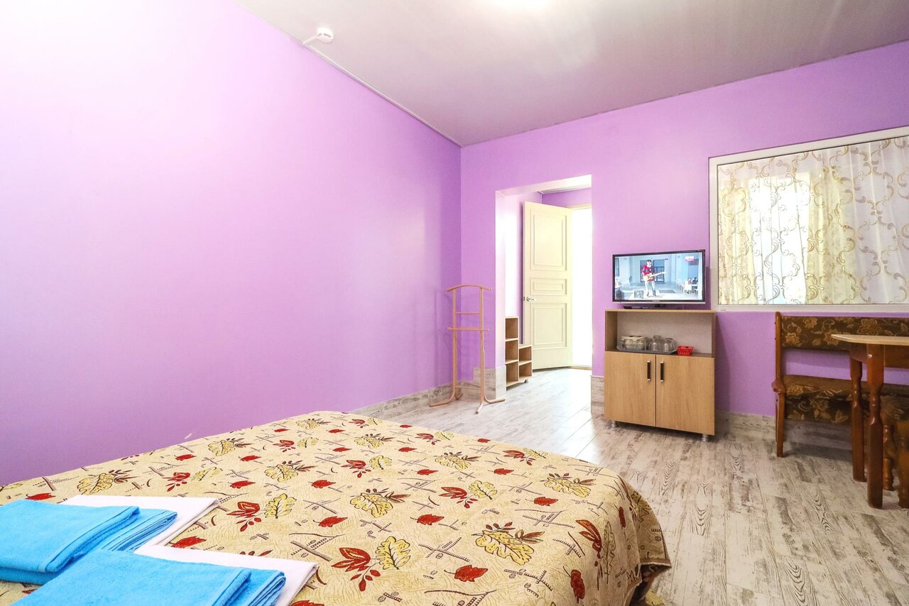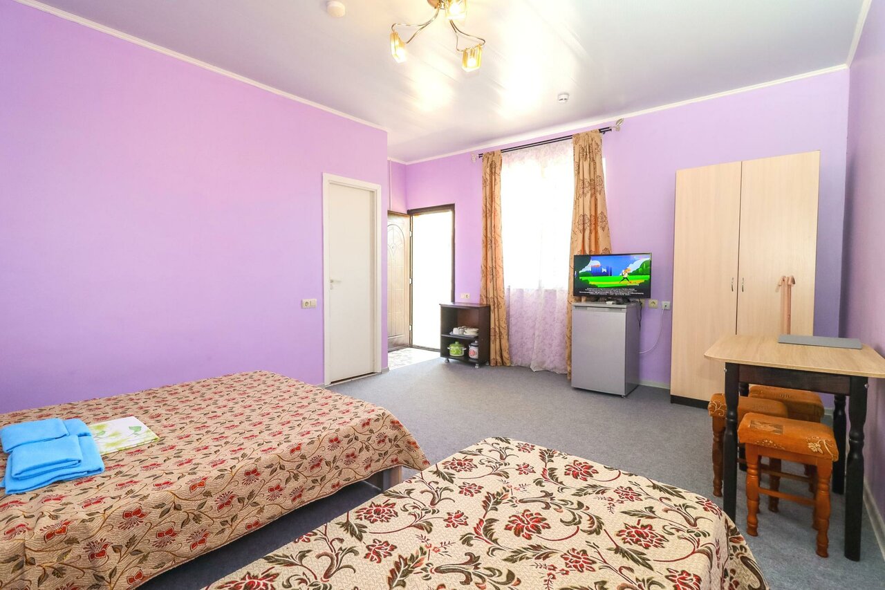 Хороший гостевой дом, завтраки вкусные, есть бассейн и детская площадка, что удобно для посетителей с детьми. Есть мангал с казаном и общая кухня. Номер был хороший, телевизор, холодильник, всё как надо. Единственный минус это трещина по стене, но это не значительно.