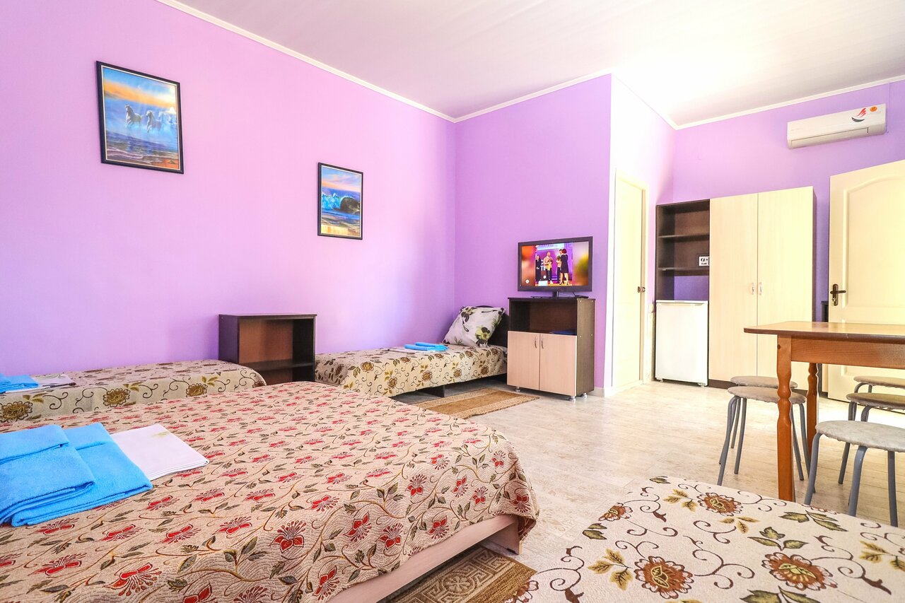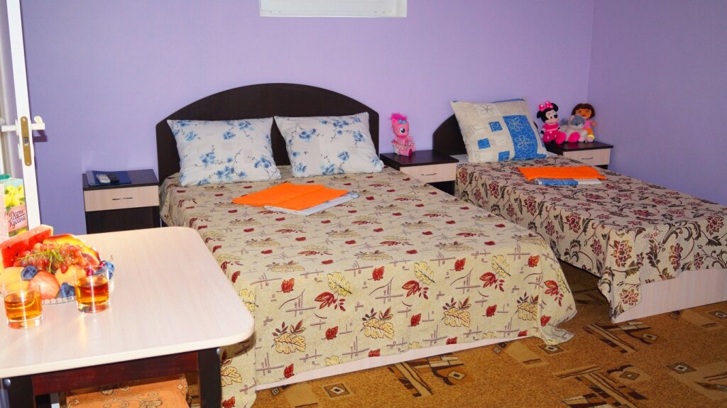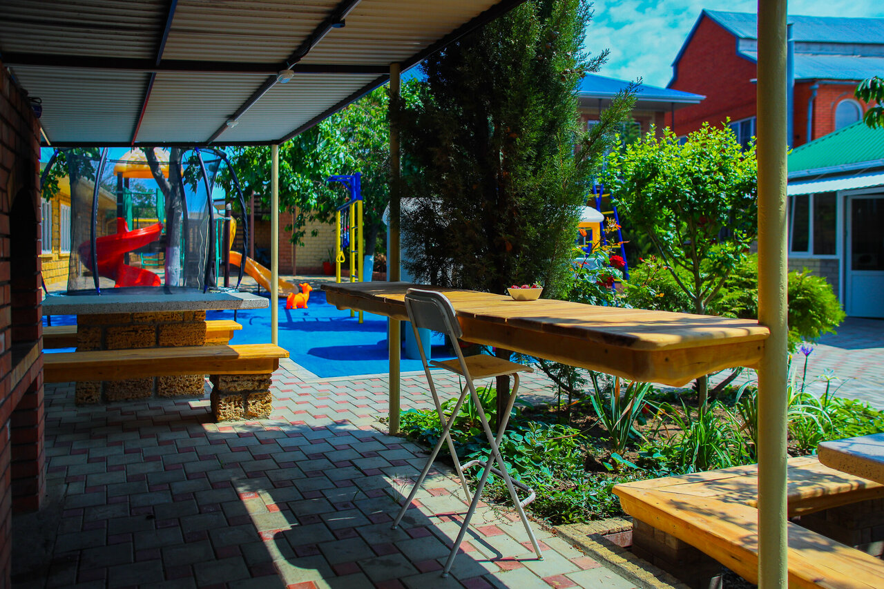 Отличный гостевой дом!!! Были с 26.07-07.08.2020. Бассейн тёплый, площадки детские очень интересные. Хозяева очень милые и доброжелательнее люди. Убирались в номере, каждый день меняли полотенца для душа и для пляжа. Есть мангал, две громадных кухни(всем все хватало). А главное чистая территория. Море в 10-12 минутах получается. Но мы были на машине, подток минуты 2-3. Если соберёмся ещё раз на Азовское море, то однозначно поедем в это место!!! Спасибо!