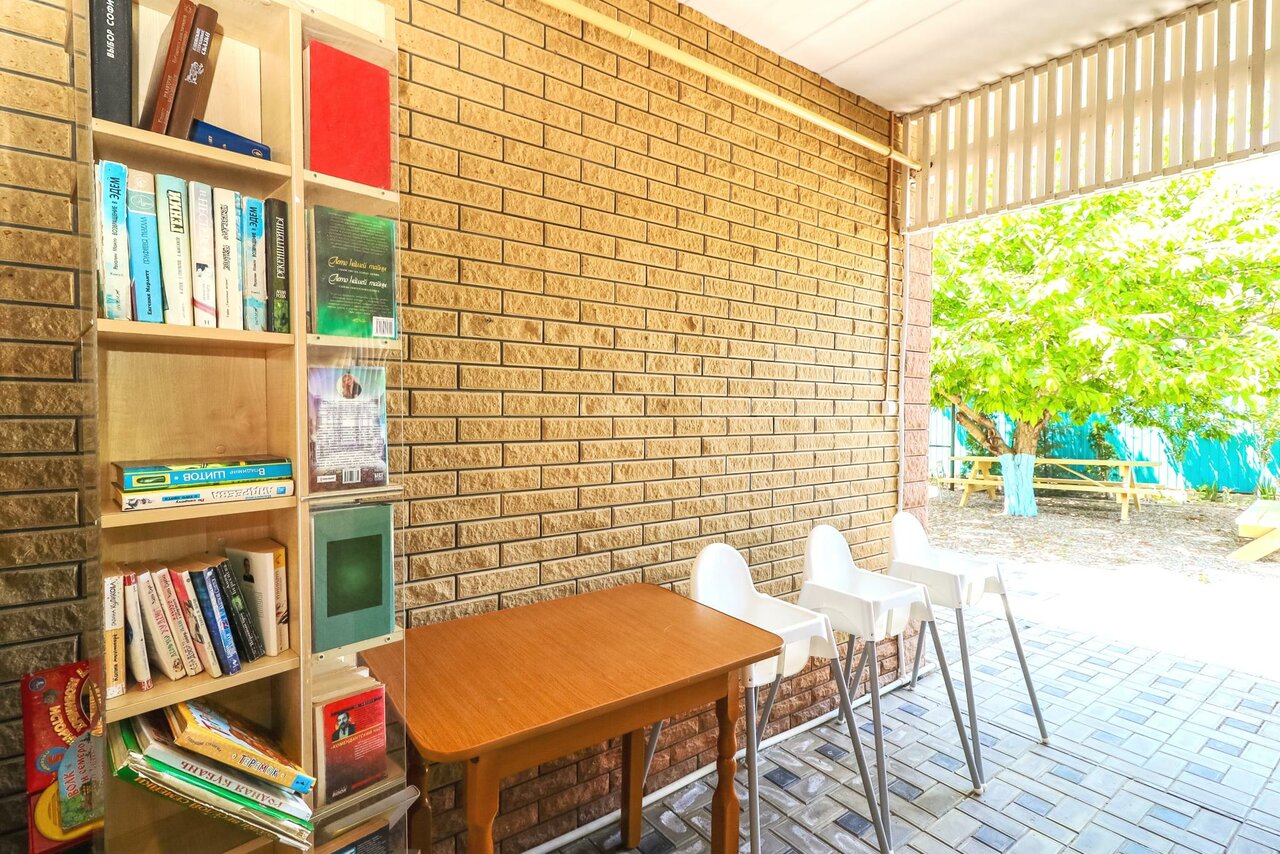 - Наличие кухни для самостоятельного приготовления пищи.; Близость к морю (10-12 минут пешком).; Возможность питания на территории (обеды по заказу).; Наличие бассейна (чистый, тёплый, с разделением на детскую и взрослую зоны).; Тихий и спокойный район.