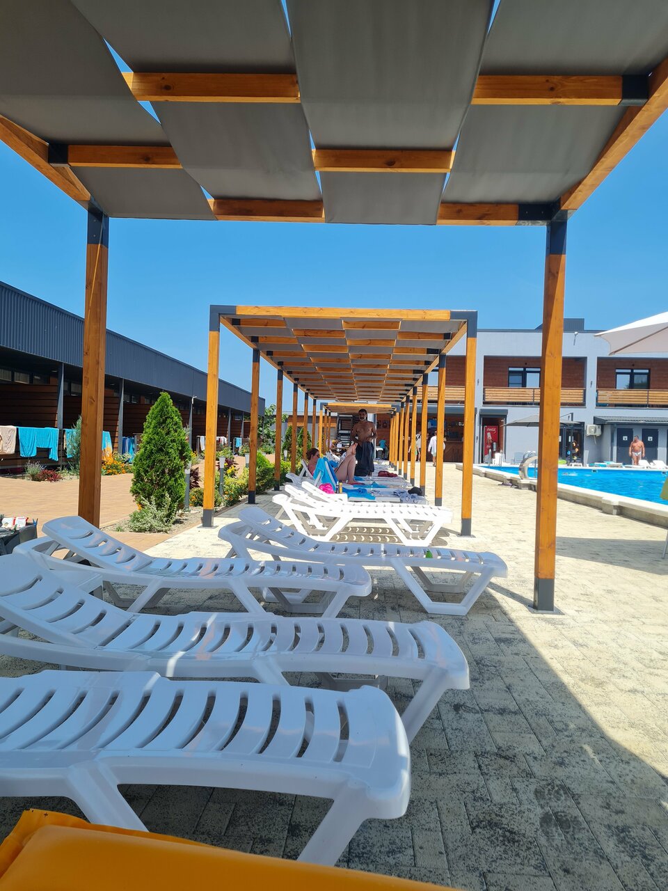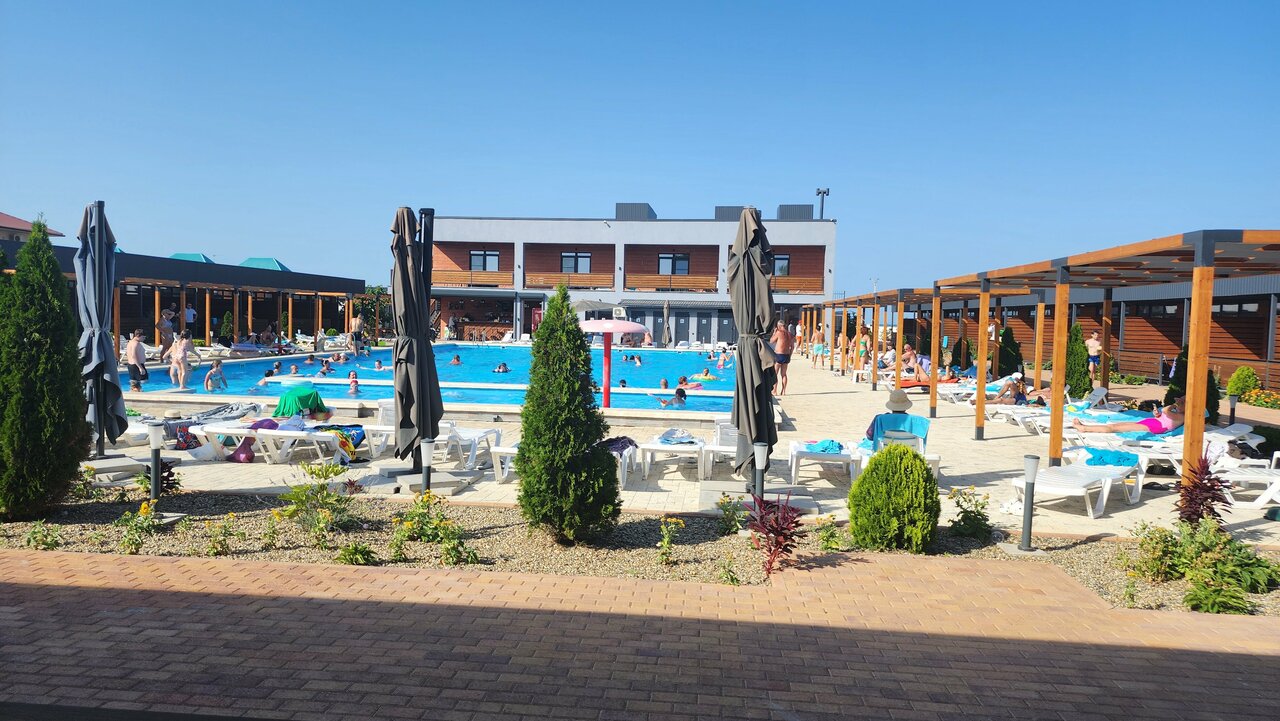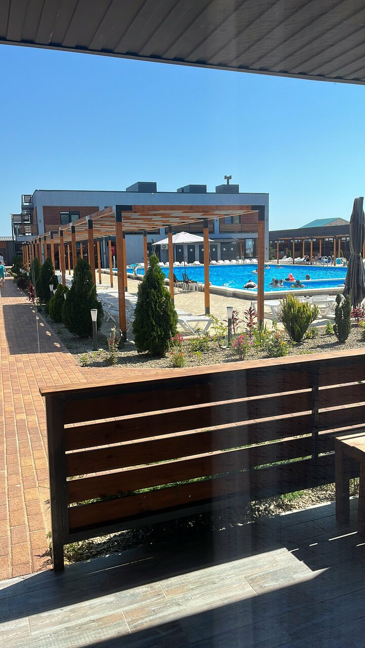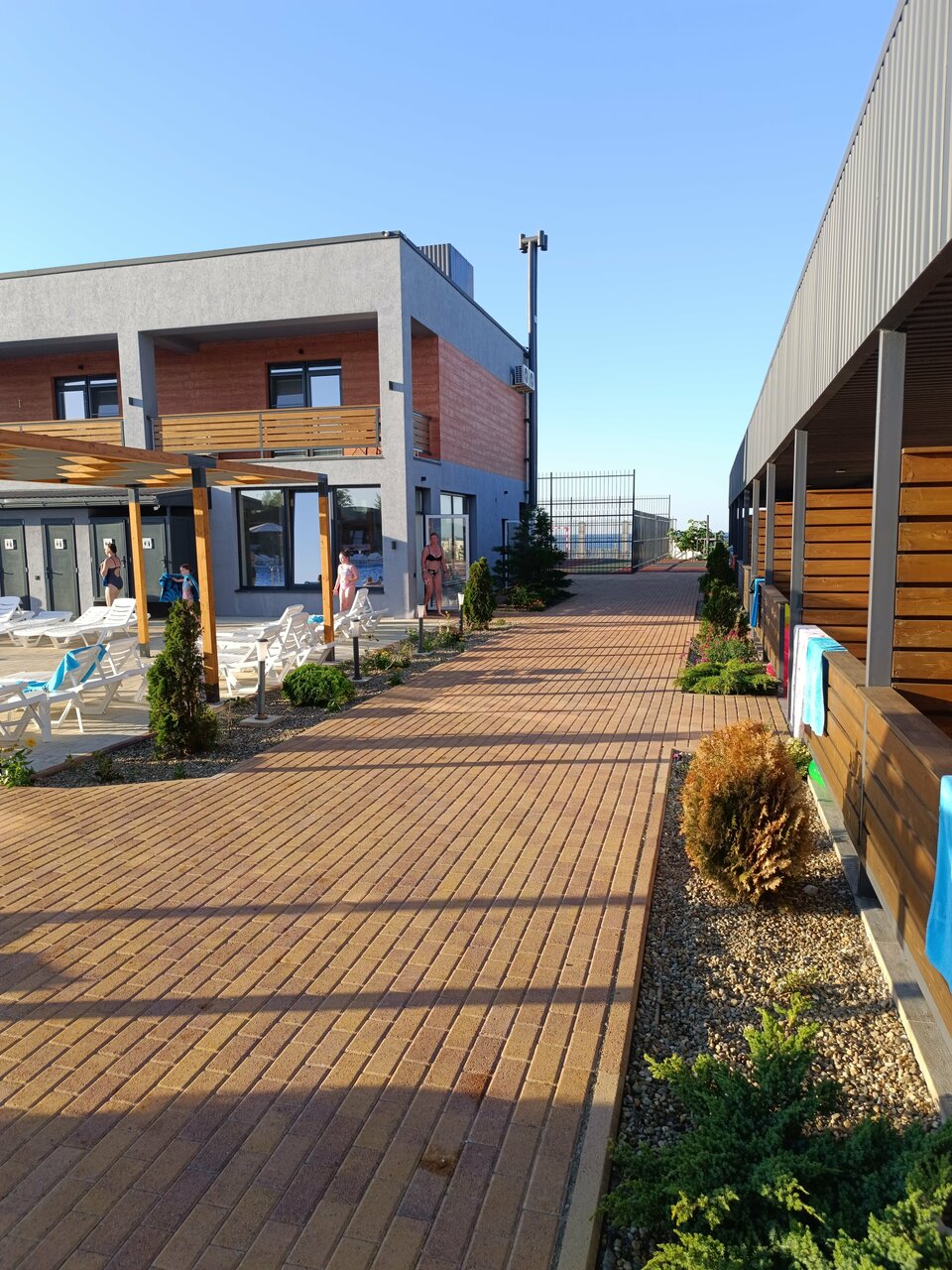Отдыхали с 15 по 22 августа 2022, сама идея комплекса супер, море 100 метров, 43 апартамента вокруг самого большого бассейна в Кучугурах, открылся 14.07.22 так что мы были одни из первых посетителей, снаружи все практически идеально, хорошие отделочные материалы, но внутри номеров решили поэкономить обидно.. и самое главное нет стиральной машины, на море., ну купите парочку дешевых стиралок, поставьте и по 200-300 рублей дайте возможность людям постиратьнадеюсь в следующем году исправятся, сделают бар у бассейна, столовую, которые в этом году ещё не готовы. Короче — идея супер, расположение супер(по мне так лучшая локация в Кучугурах- все рядом) реализация немного хромает, но надеюсь через год доделают. Да и ещё четь не забыл , вечером в тишине посидеть на улице не получиться, за забором в парке развлечений дискотека(((