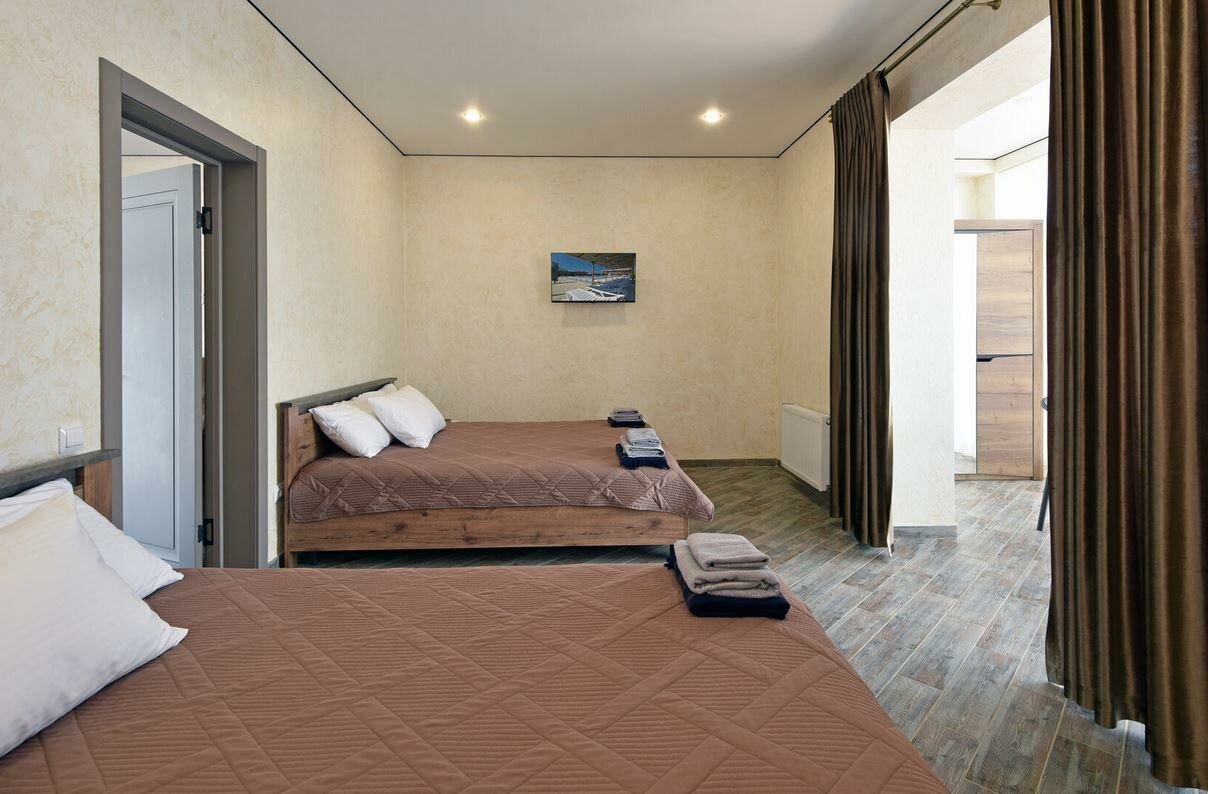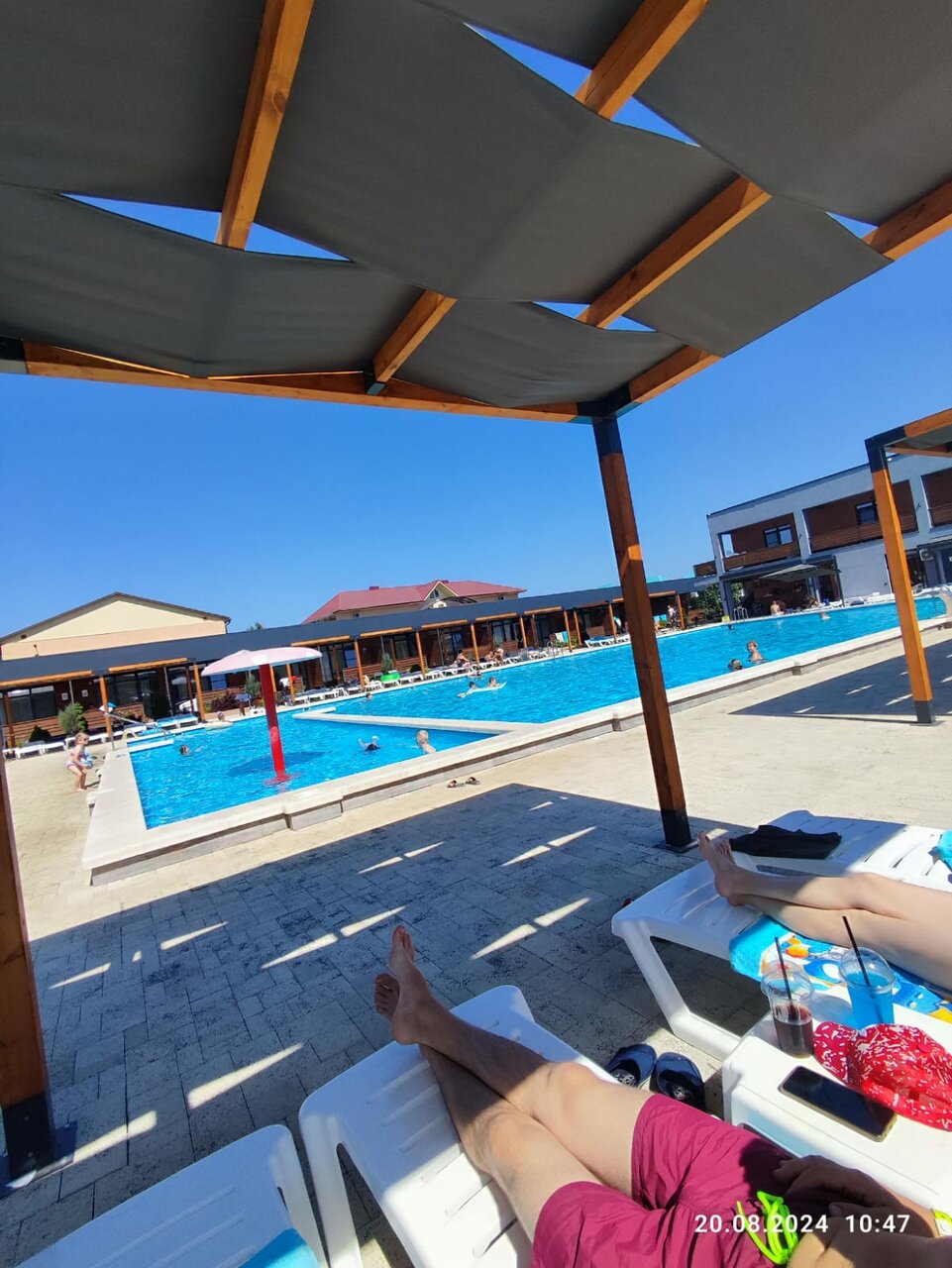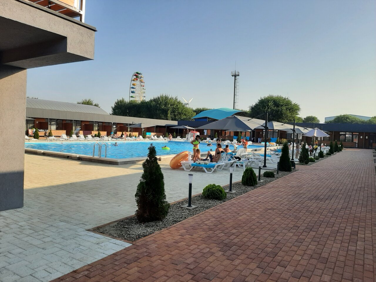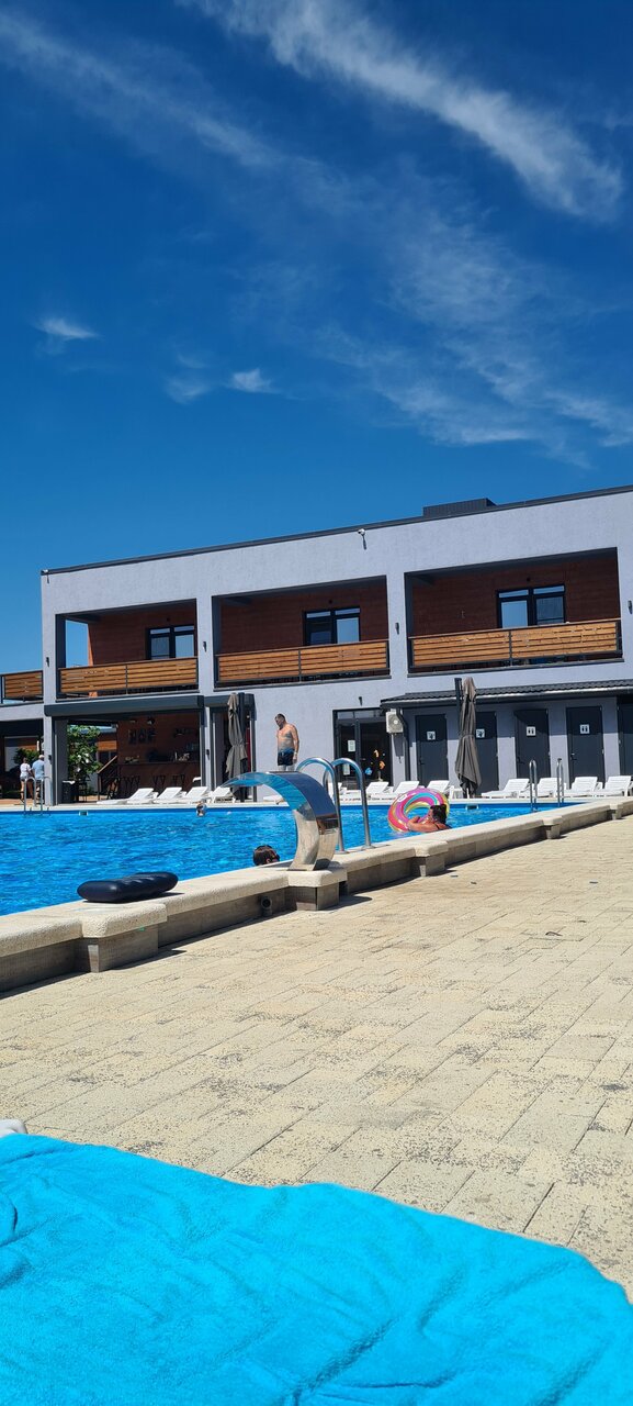 Отдыхали с 15 по 22 августа 2022, сама идея комплекса супер, море 100 метров, 43 апартамента вокруг самого большого бассейна в Кучугурах, открылся 14.07.22 так что мы были одни из первых посетителей, снаружи все практически идеально, хорошие отделочные материалы, но внутри номеров решили поэкономить обидно.. и самое главное нет стиральной машины, на море., ну купите парочку дешевых стиралок, поставьте и по 200-300 рублей дайте возможность людям постиратьнадеюсь в следующем году исправятся, сделают бар у бассейна, столовую, которые в этом году ещё не готовы. Короче — идея супер, расположение супер(по мне так лучшая локация в Кучугурах- все рядом) реализация немного хромает, но надеюсь через год доделают. Да и ещё четь не забыл , вечером в тишине посидеть на улице не получиться, за забором в парке развлечений дискотека(((