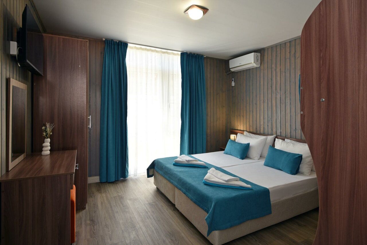 Были с мужем в конце августа на годовщину . Остались очень довольны , все чисто и на территории отеля и в номерах . Персонал приветливый и отзывчивый . В бассейне вода теплая и чистая, каждый вечер егочистят . До моря идти 2-3 минуты ,пляж хороший По питанию в столовой , все понравилось , конечно не прям разнообразное , но думаю в целом все хорошо . Многие писали, что громкая музыка за забором и невозможно спать , мы были там 3 дня и ни разу прям такой громкой музыки не было . Спали хорошо , ничего не слышали . Вообщем все понравилось , думаю обязательно вернемся ещё раз