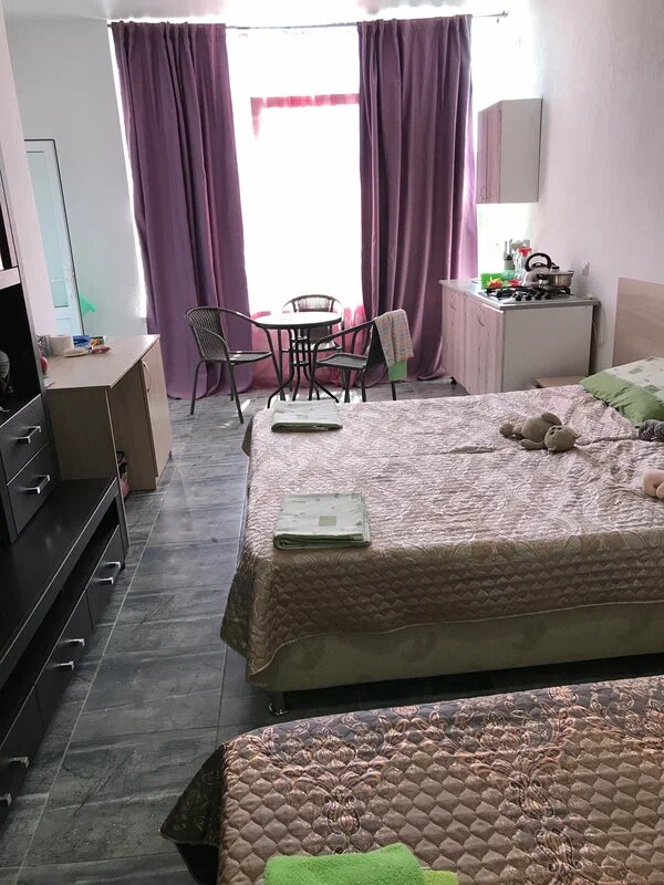Чисто, уютно в номерах. Хорошо оборудованная отдельно стоящая кухонная зона. Рядом санаторий ‘Искра’ с термальными бассейнами. В шаговой доступности Азовское море.