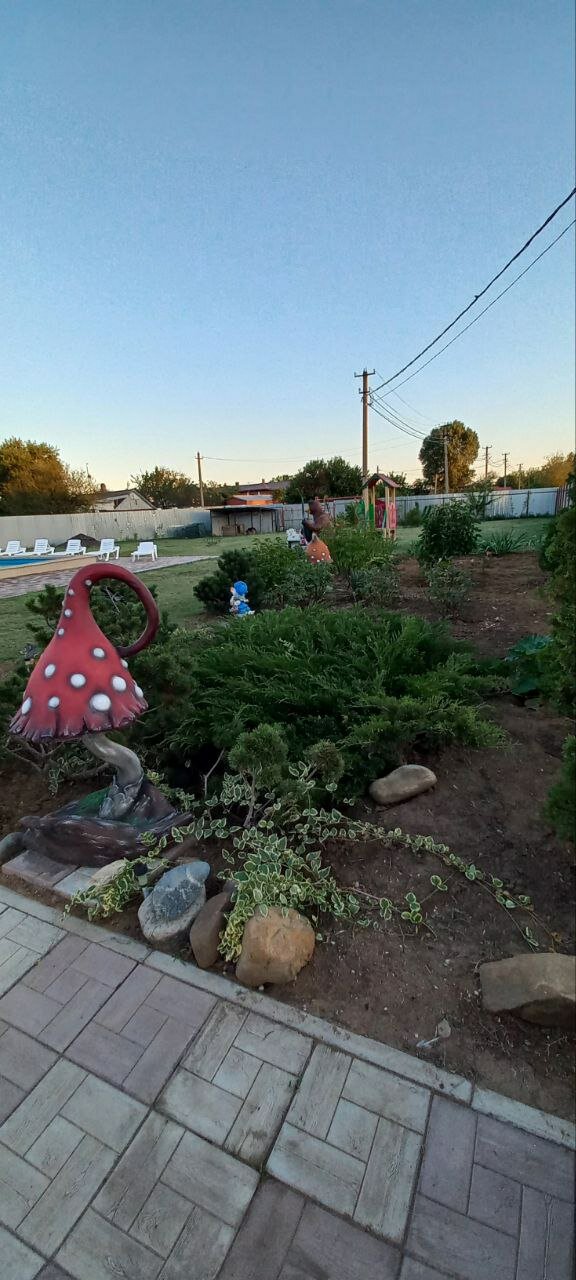 Самый лучший дом отдыха. Хозяева очень радушные. Номера чистые,большие. Большая кухня, отдельное здание. Есть варочная плита на 4 комфортки, холодильник, два электрочайника. 5 столов внутри кухни и на улице под навесом. Имеется бассейн, чиститят каждый день. Есть мангал. Предоставят решётку и шампура. Есть поле для футбола, детская площадка. Демократичные цены за проживание. Надеемся, что ещё приедем сюда отдыхать!