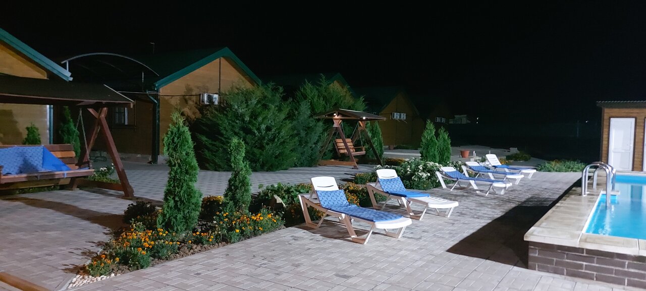 Отдыхали у Сергея не один раз. Домики чистые, подушки и матрацы немного потрёпанные, но я привыкла ездить со своей подушкой. Территория красивая, есть детский городок, хоть и не большой. Бассейн для взрослых и детский мелкий, без подогрева. Большая просторная кухня с посудой, хватит на всех. На территории вечером свет горит везде. Есть качели. Кстати ещё в домиках есть телевизор, стол и стулья. Атмосферно и спокойно. До моря минут 10 ходьбы по прямой. Сергей и Ольга, очень приятные, вежливые хозяева. Очень рекомендую.