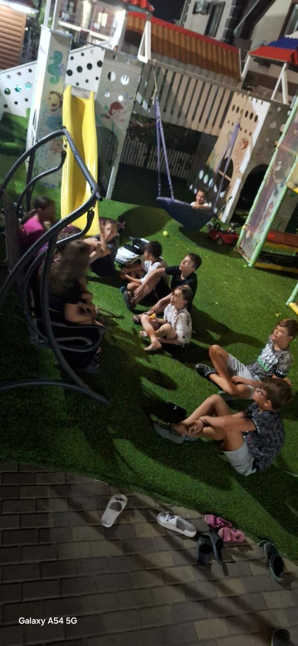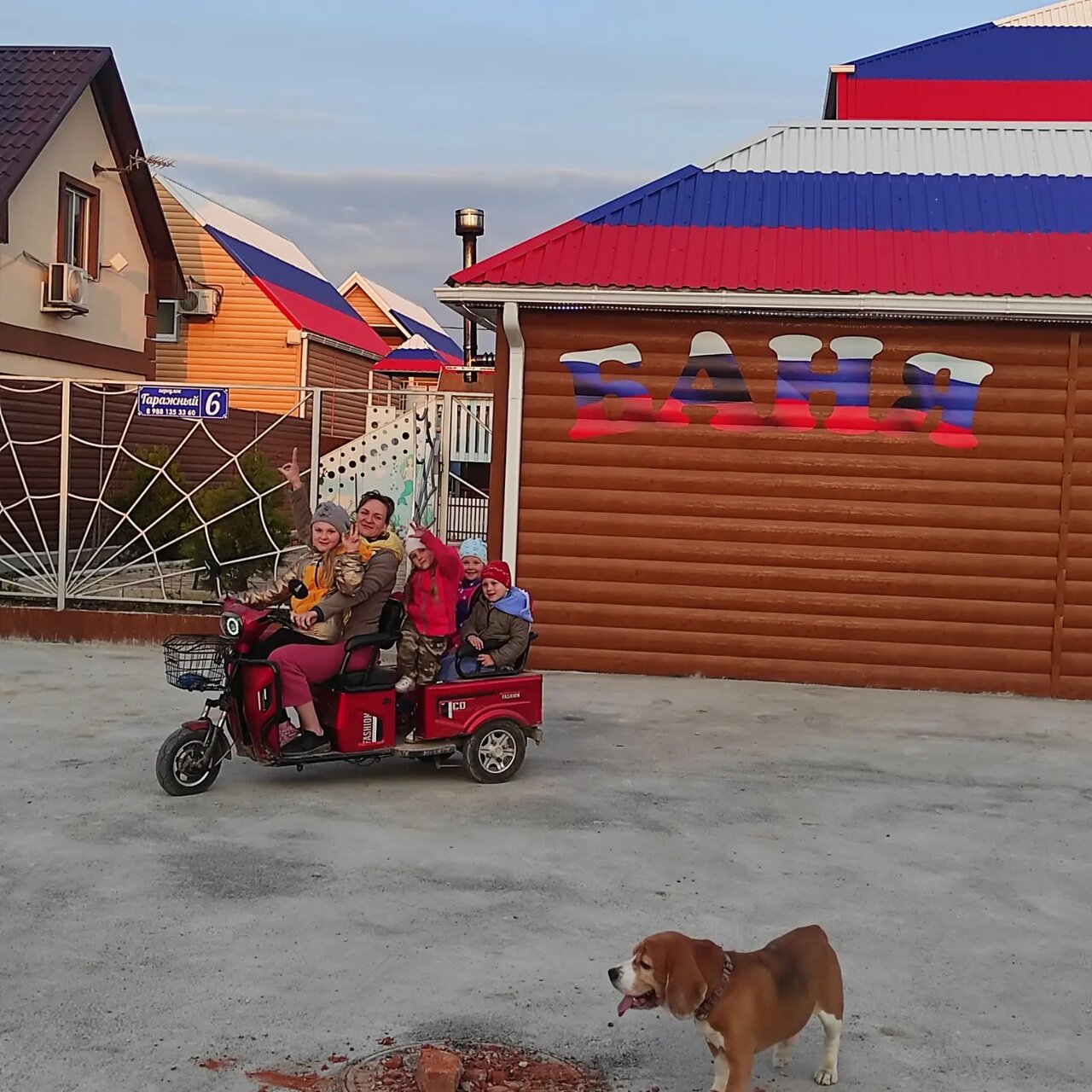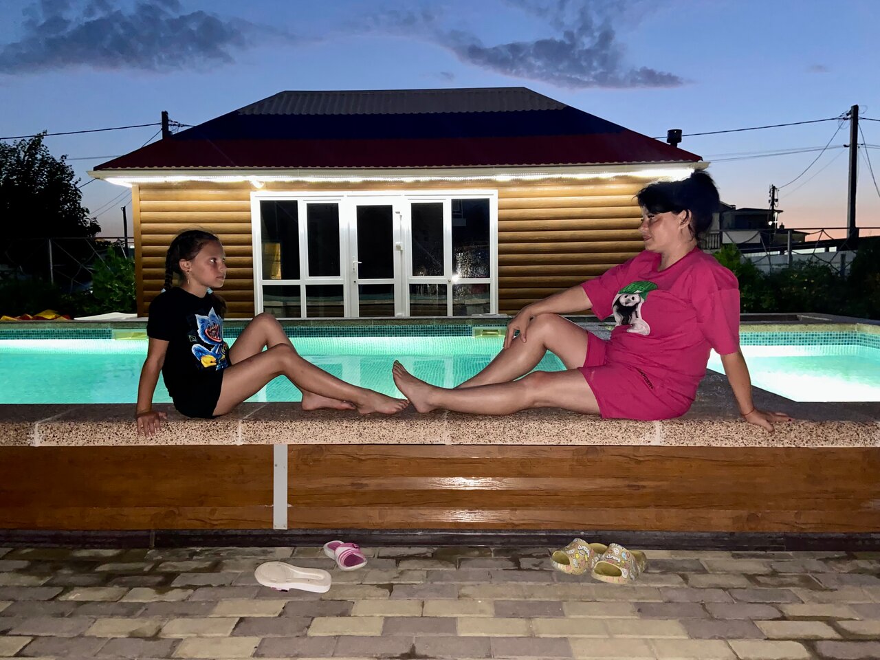 Лучшее место! Собираются в одном месте несколько многодетных семей, все разновозрастные дети находят себе компанию, играют целый день на свежем воздухе, на территории гостевого дома — на детской площадке, в игровой комнате, на батуте, в бассейне, а родители в это время отдыхают от детей 🙂 Ну, у бассейна надо за детьми приглядывать — или на шезлонге, или плавая рядом, и на море надо вместе ходить, а остальное время дети отдыхают сами. Лучший отдых! Все на территории есть, все бесплатно, все душевно! Море теплое, песок мягкий, ночи темные и тихие… Три года сюда ездим, приедем и еще.