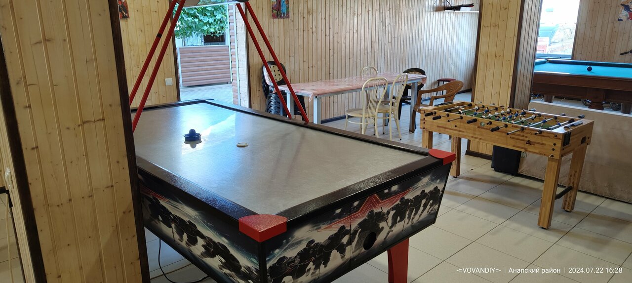 Минусов нет. Плюсы: мы жили в студии, в ней может комфортно разместиться семья из 5 человек, наверное, можно и раскладушку попросить, в ней полноценная кухня с плитой, холодильником и микроволновкой. Также в доме есть классный бассейн, мангальная, ведосипеды, сапы, электросамокаты, бильярд, аэрохоккей, 2 плейстейшна- 5, детская площадка — и всё это без дополнительной платы, бери и пользуйся. Мы были заняты на детским фестивале, не так много времени проводили в доме, но, как я поняла, что там ещё полно всяких плюшек для гостей. Отдыхали в основном семьи с детьми, но по вечерам было тихо, кстати, в номерах тоже было совсем не слышно соседей. До моря 1 минута. Гостеприимный хозяин, можно подумать, что это не его бизнес, а просто понаехало куча его родственников.
