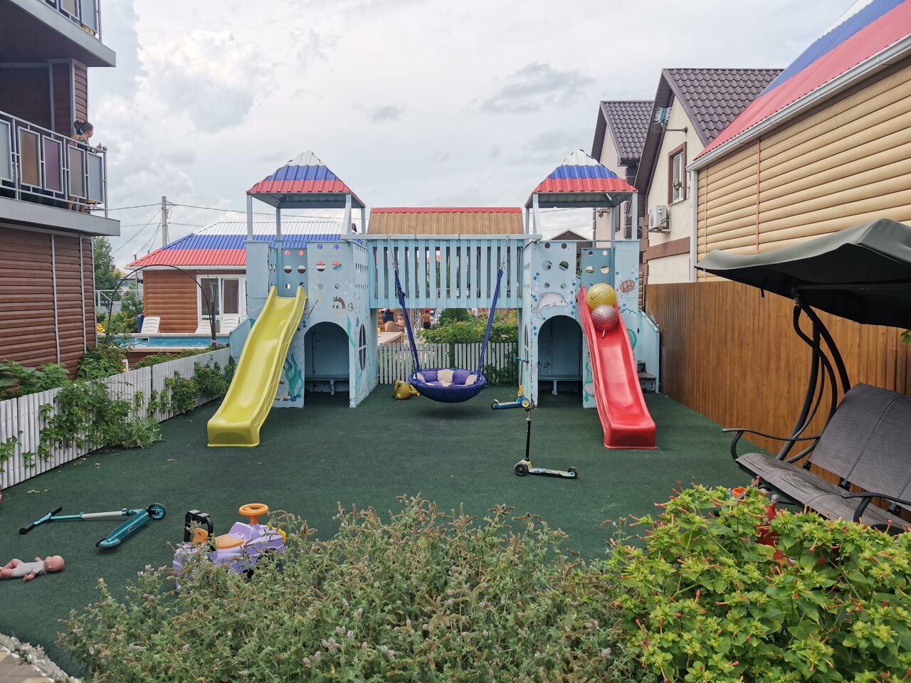 Отличное место , рядом море , много развлечений для детей и для взрослых , бассейн с местом для детей , мангал , казан , есть парковка для машин