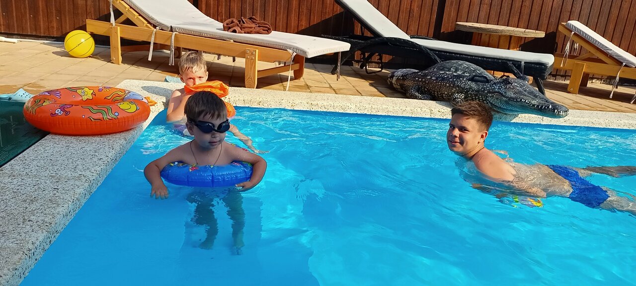 Отдыхал с семьей в начале июля 2024г. Отличное место! Уютные двухэтажные домики с полным фаршем (особенно супругу порадовала стиральная машина)). Домиков всего 4, так что атмосфера ‘как у себя на даче’. Дружелюбные владельцы, которые моментально реагируют на просьбы и пожелания. Особую радость детям доставил достаточно большой подогреваемый бассейн, который хозяин чистит каждый день (дети не вылезали из бассейна часами). Мы очень довольны и обязательно приедем еще!!