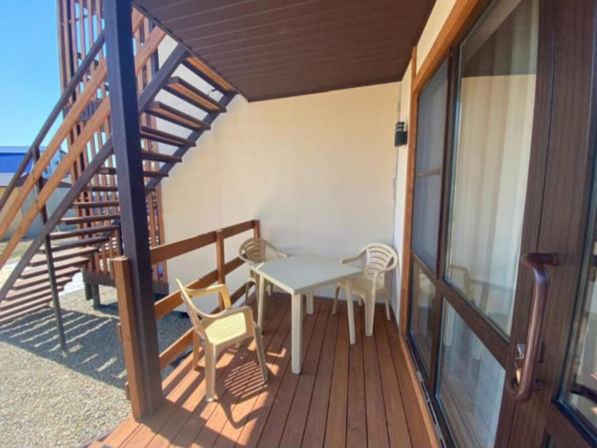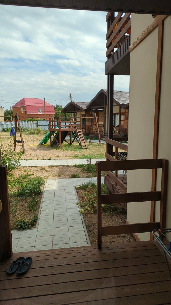 Удобства: — Номера с кондиционером, холодильником, ТВ, Wi-Fi и санузлом (от 2000 до 4500 ₽/ночь). — Бесплатная парковка, общая кухня, терраса, детская площадка и собственный пляж. — Дополнительно: платный трансфер, прачечная, стиральная машина, посуда, микроволновка. — Для гостей с животными — проживание за отдельную плату.