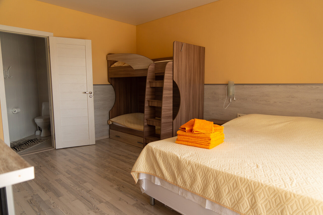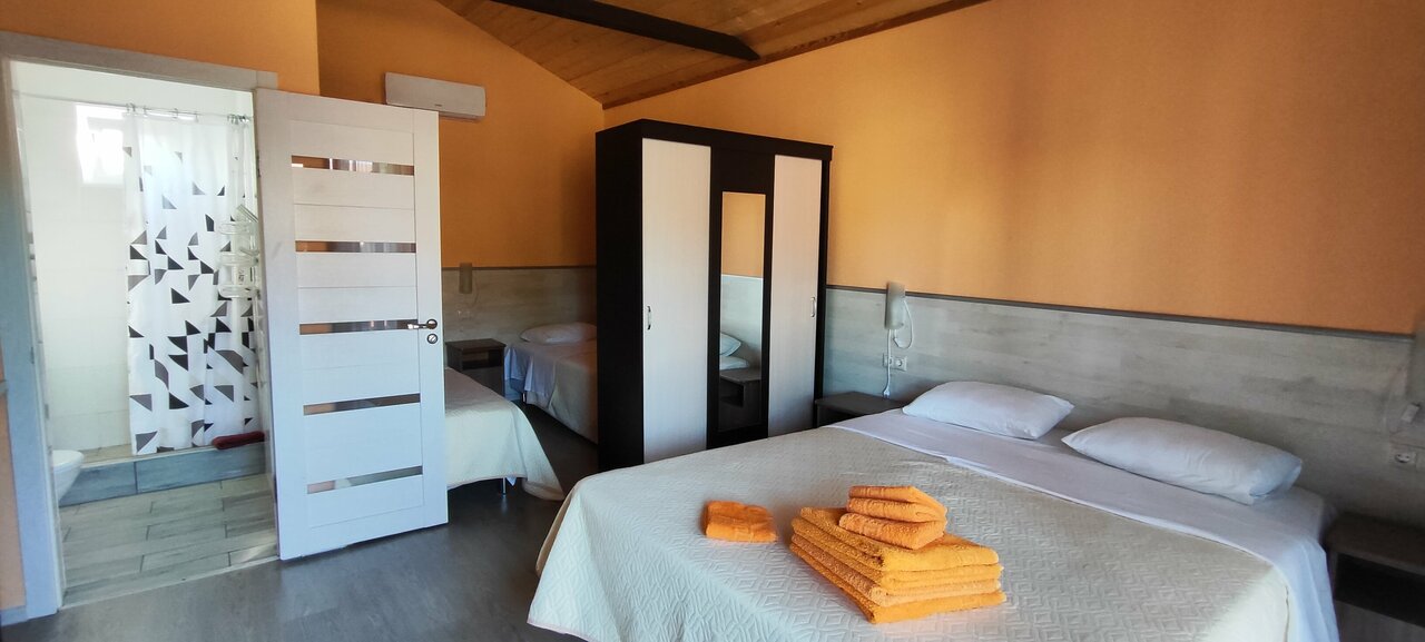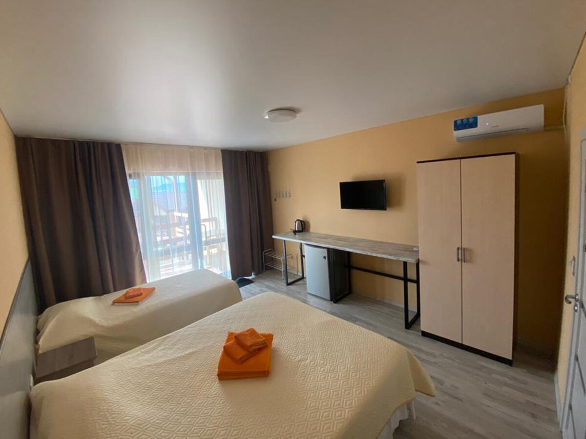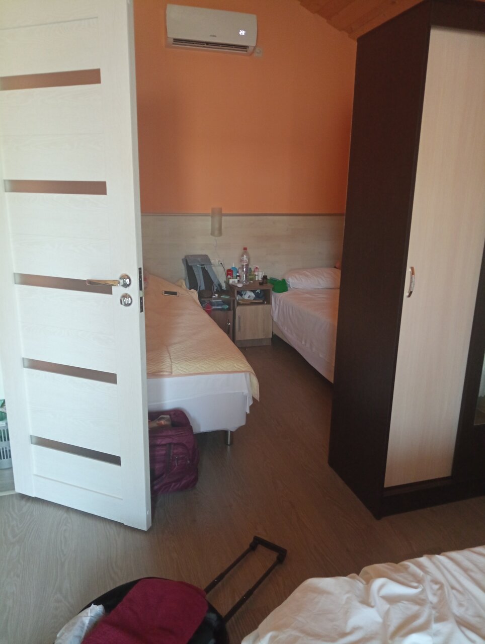 Отдыхаем тут уже второй год, очень нравится этот отель. Вежливые хозяева, очень чисто и уютно, есть общая кухня, стиральная машинка, батут, детская площадка и парковка. Номера в европейском стиле. В номере кондиционер, чайник, холодильник и телевизор. Рядом много столовых , магазинов. До моря 5-7 минут пешком.